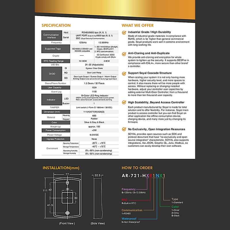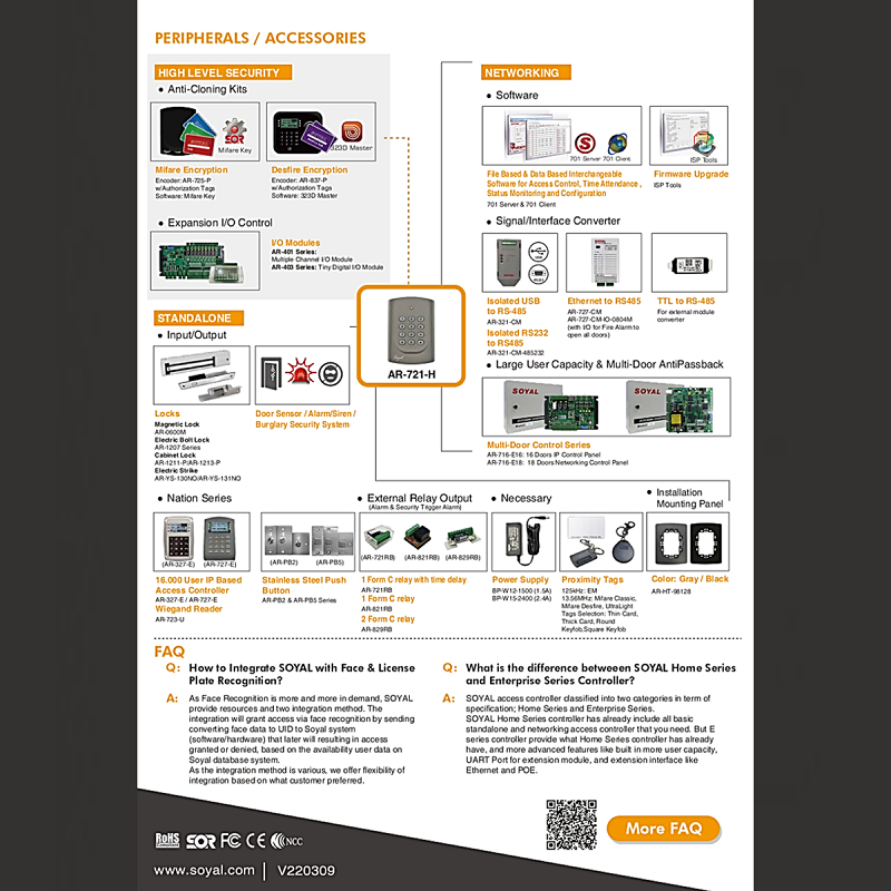 Soyal Access Control Single Door Access Controller Reader, AR-721HB (RFID EM CARD)