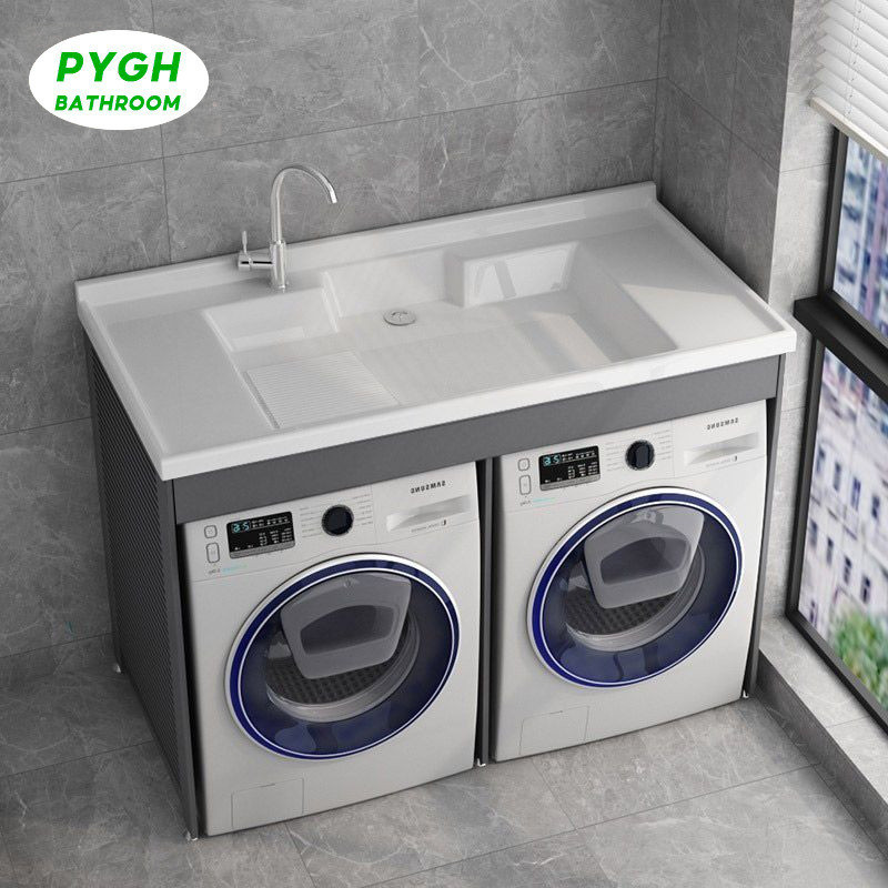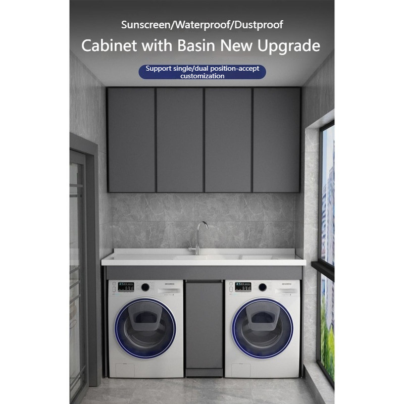 Space Aluminum Balcony Laundry Cabinet Combination Double Washing Machine Cabinet Dryer Bathroom Cabinet Stacking Cabinet