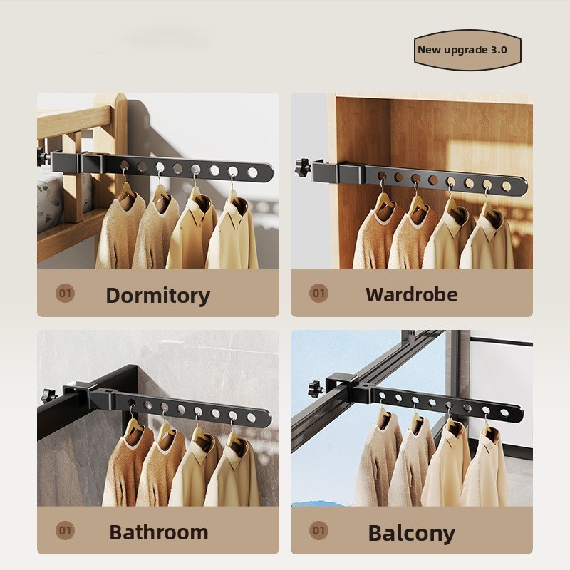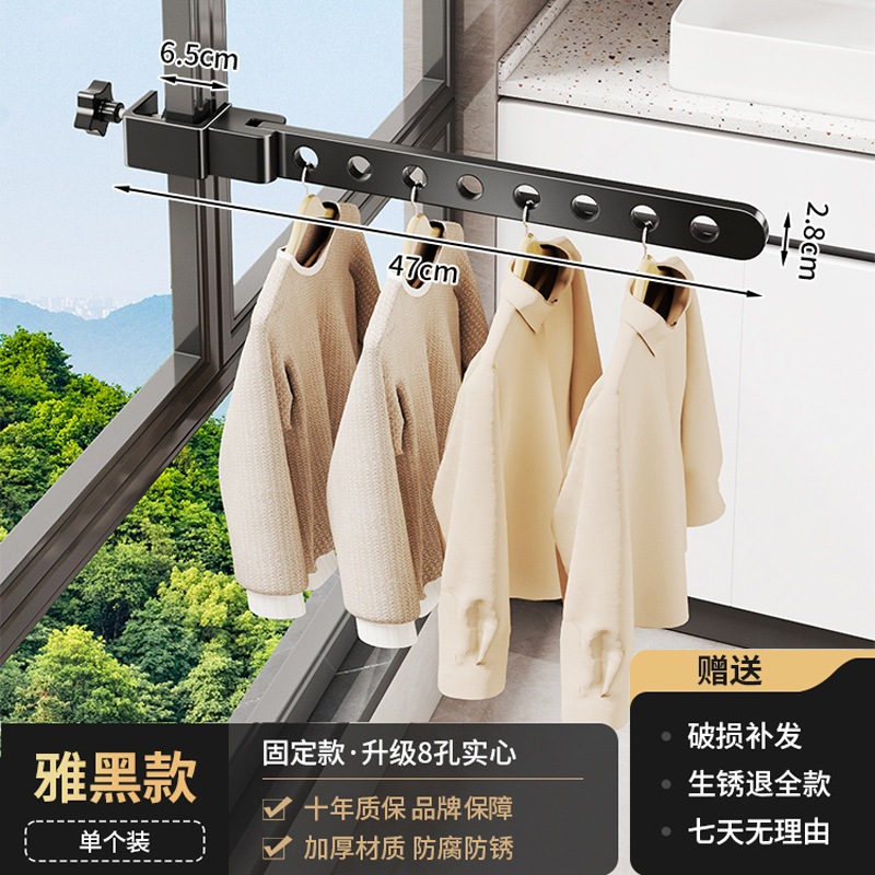 Adjustable Window Drying Rack Wall Mounted Clothes Hanger Foldable Rotatable Black Clothes Rack Non Punching Clothes Hanger For Indoor Use