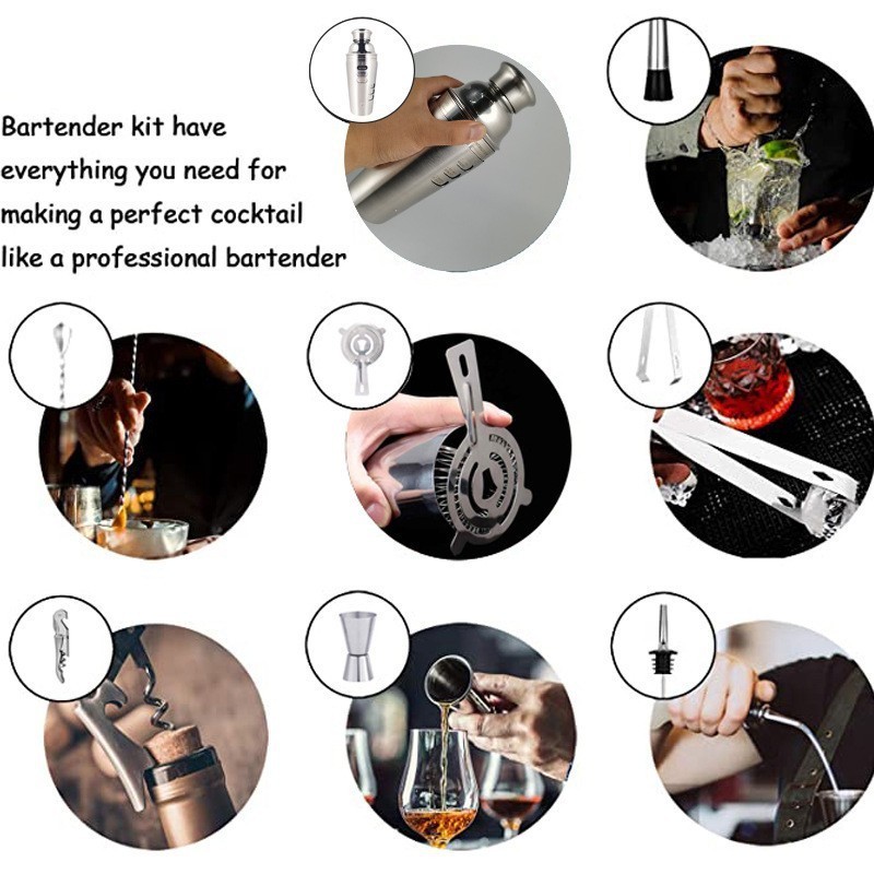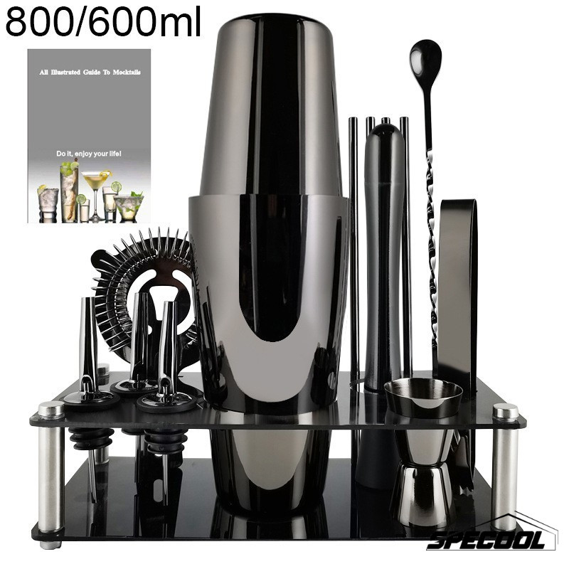 Specool® 3-14psc Stainless Steel Cocktail Shaker Boston Shakers Set Bar Bartender Bartending Kit/Tools 800/600ml 550ml