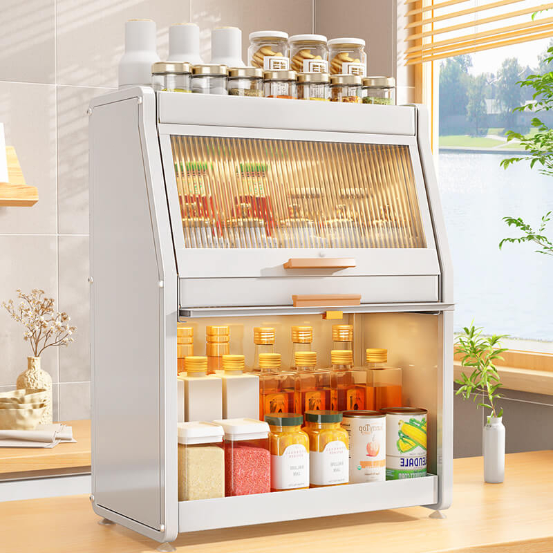 Spice Rack Cabinet Seasoning Organizer Kitchen Storage Container 2-layer Storage Kitchen