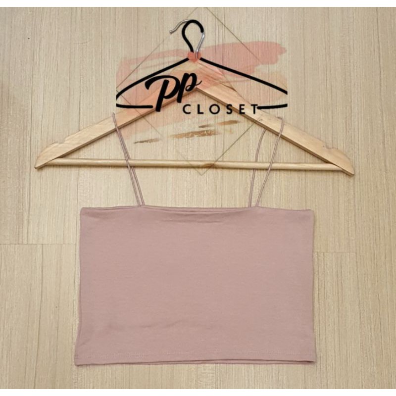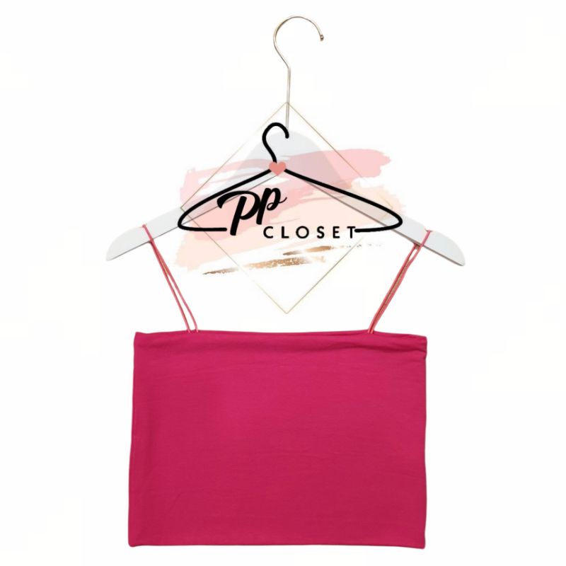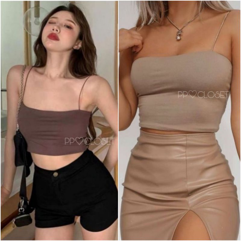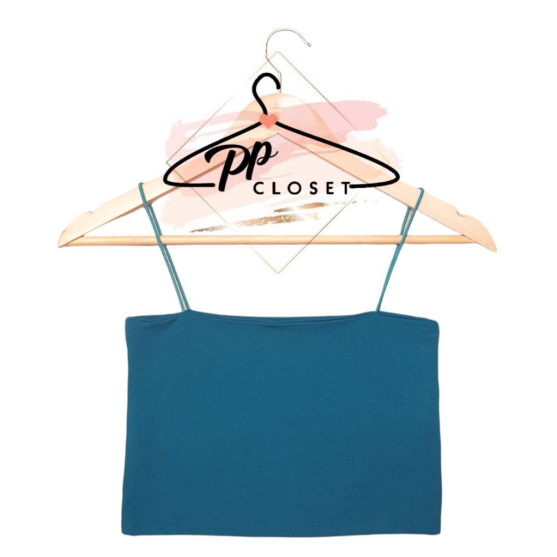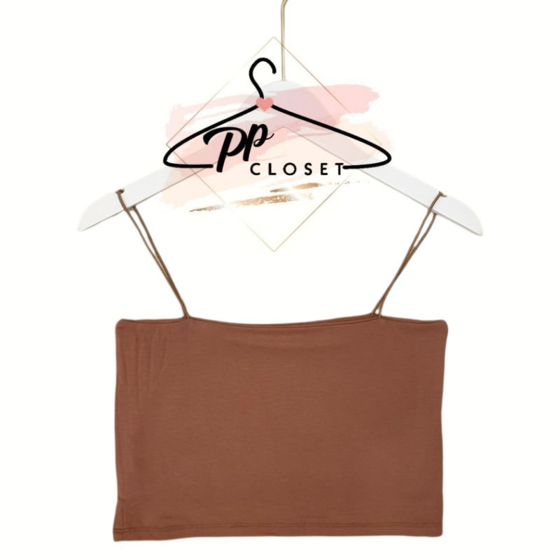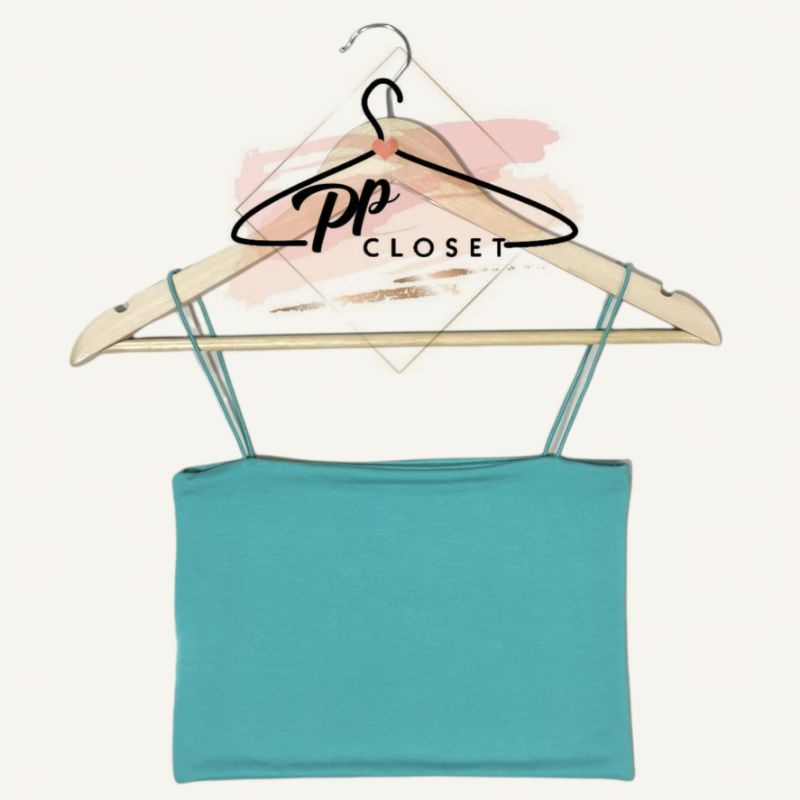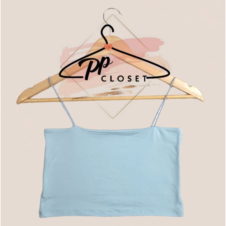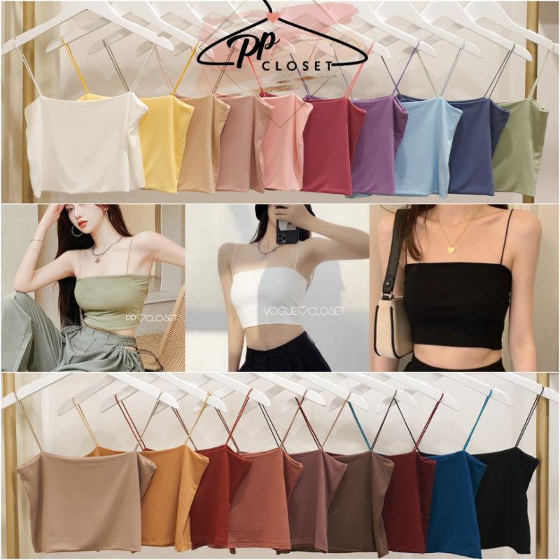 PP CLOSET 25 Colors!! Crop Top With Spaghetti Straps Strong Strap 2-Layer Fabric All Over Tighten Spaghetti Top
