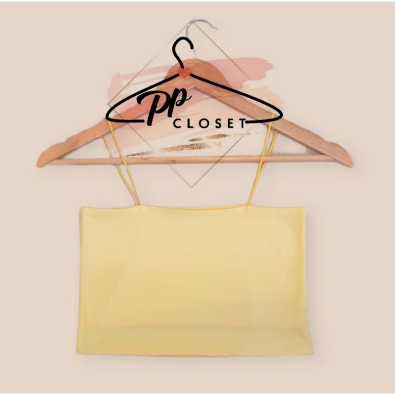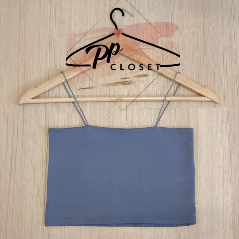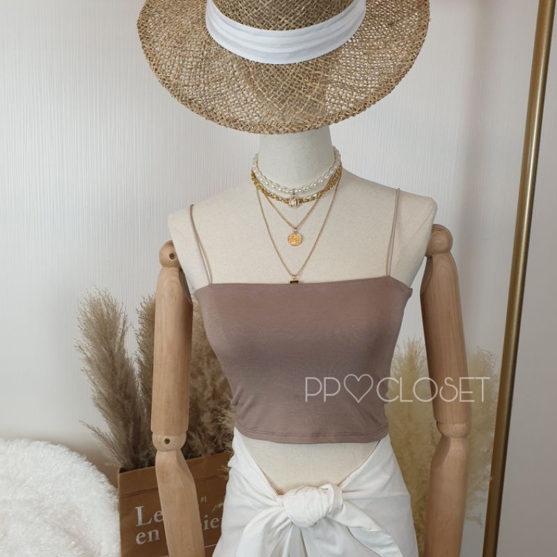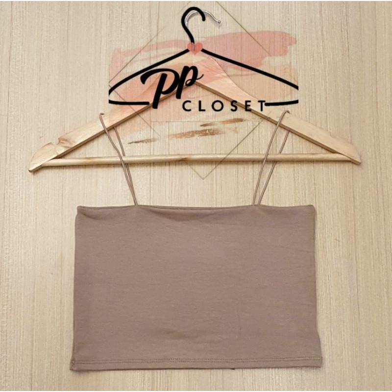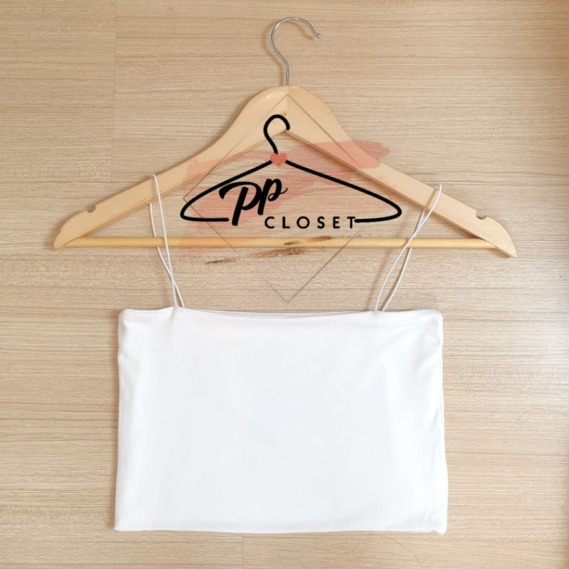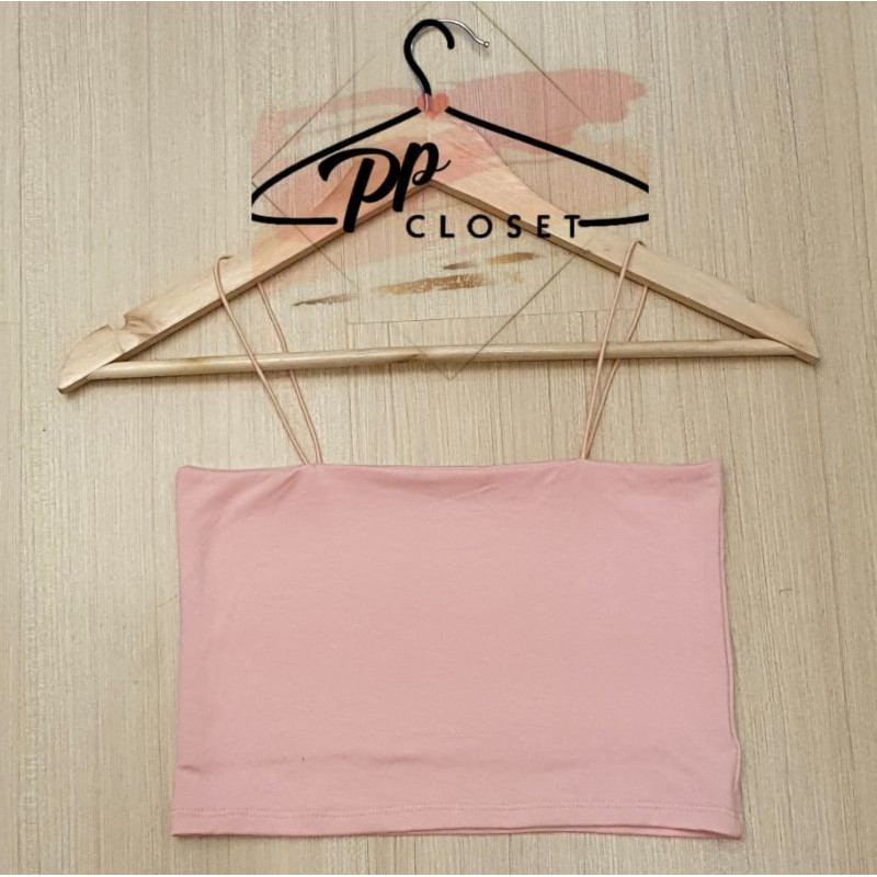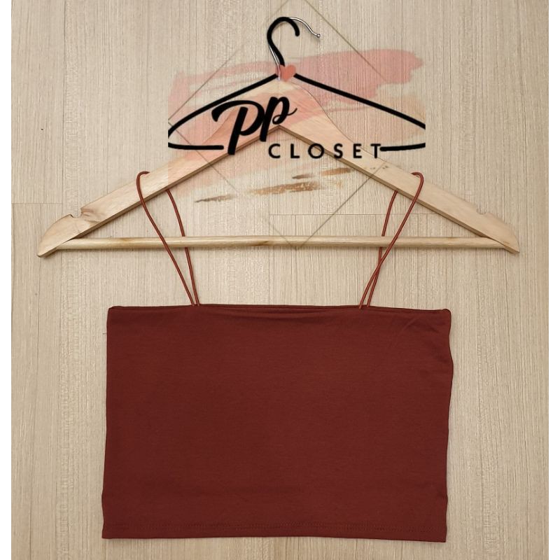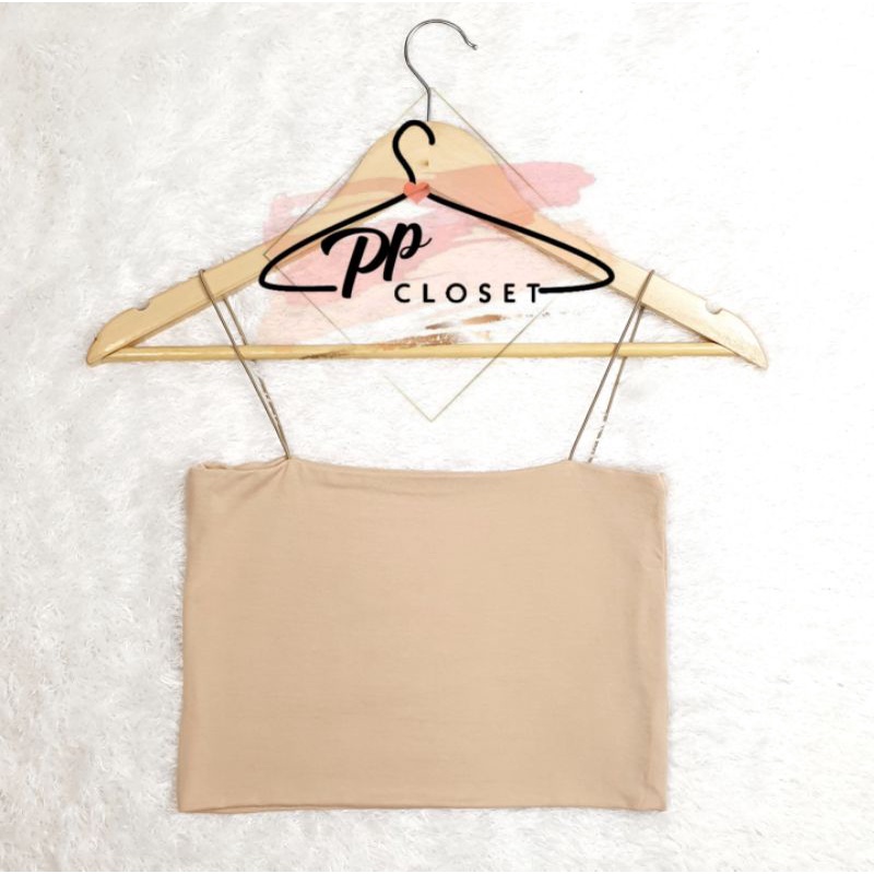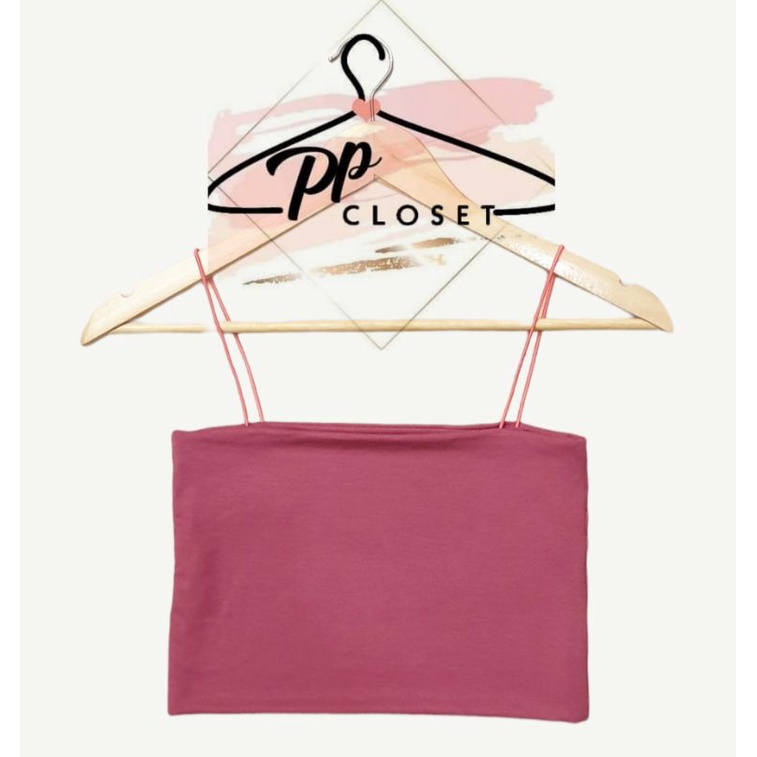 PP CLOSET 25 Colors!! Crop Top With Spaghetti Straps Strong Strap 2-Layer Fabric All Over Tighten Spaghetti Top