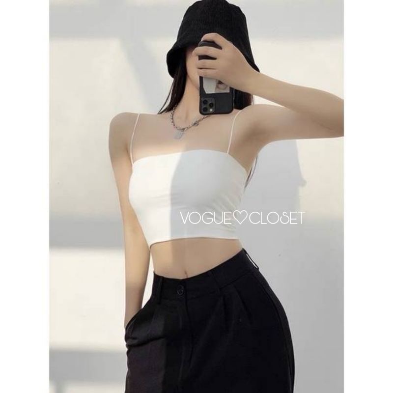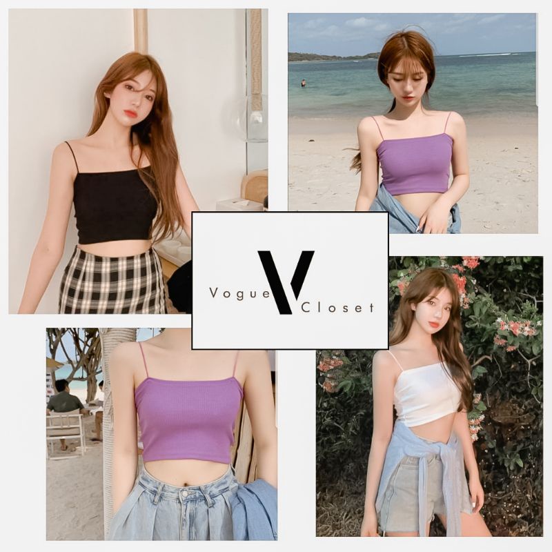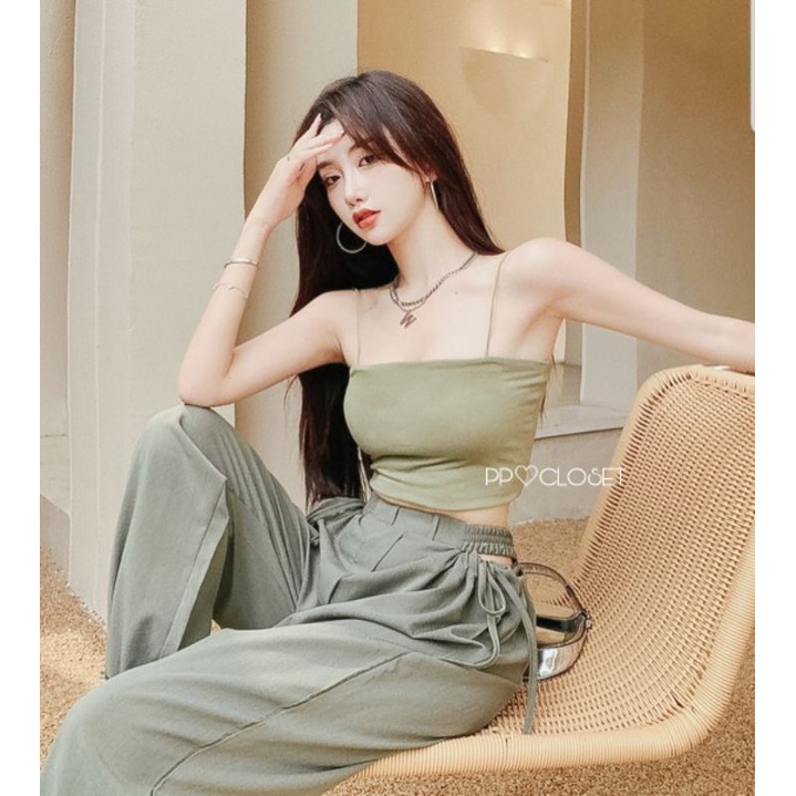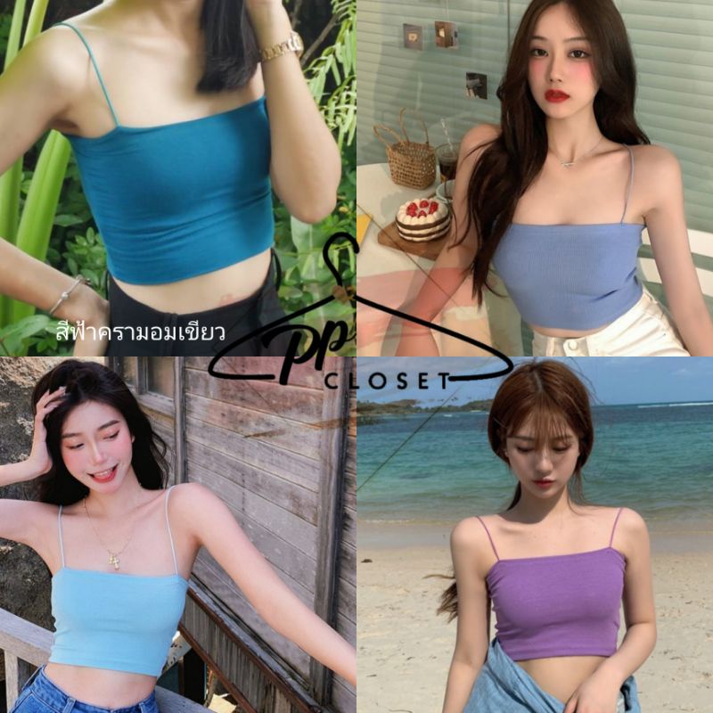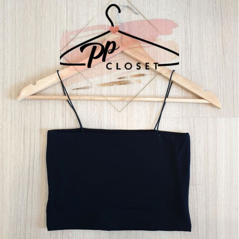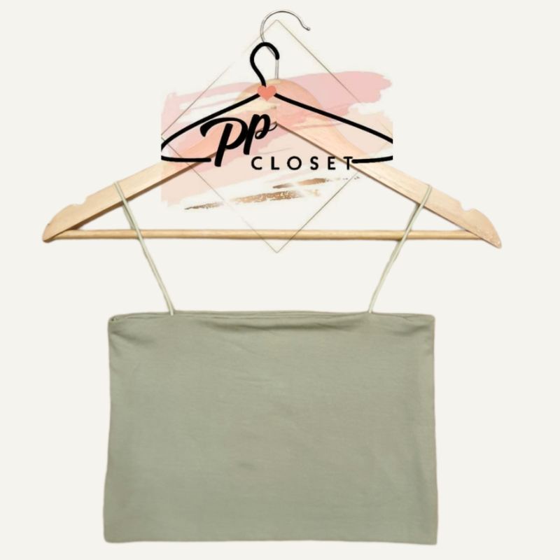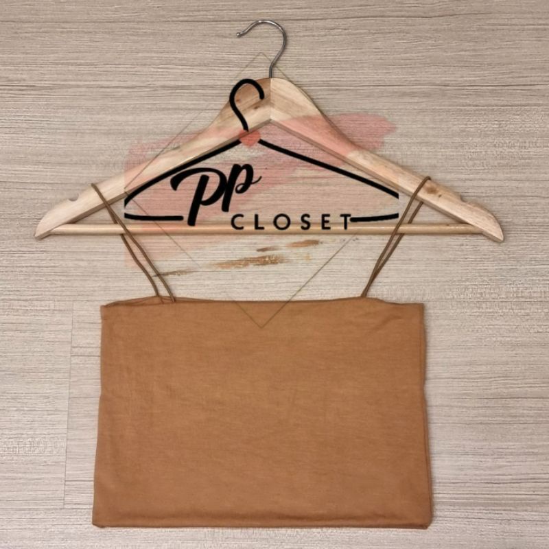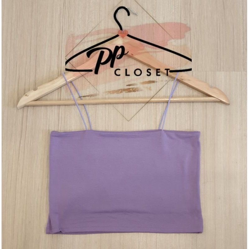 PP CLOSET 25 Colors!! Crop Top With Spaghetti Straps Strong Strap 2-Layer Fabric All Over Tighten Spaghetti Top
