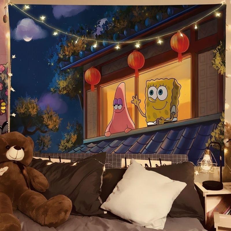 SpongeBob SquarePants Big Star Background Wallpaper Cartoon Animation Hanging Cloth Netizens Dormitory Bedroom Rental Room Renovation Hanging Picture