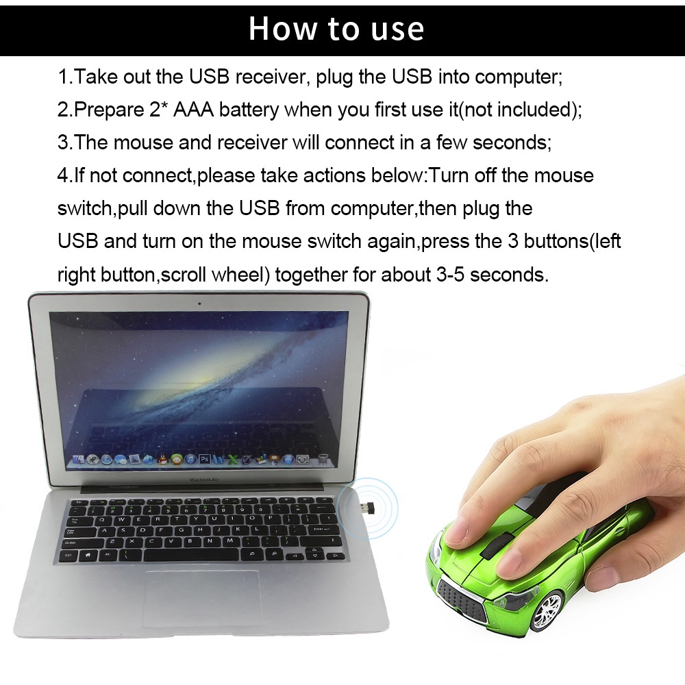 Sports Car Wireless Mouse Ergonomic with USB Receiver Battery Optical 3D Mice With LED Light For PC Laptop