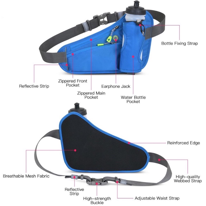 Sports Hydration Belt Bag Running Belt Waist Pack Bum Bag with Water Bottle Holder Running Cycling Hiking Walking