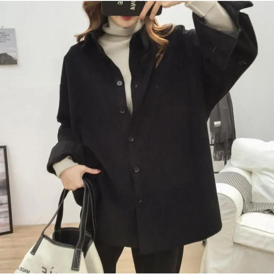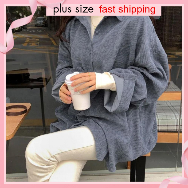Brushed Haze Blue Salt Style Outer Stacking Corduroy Shirt Women Spring Autumn Design Sense Hong Kong Ladies Loose