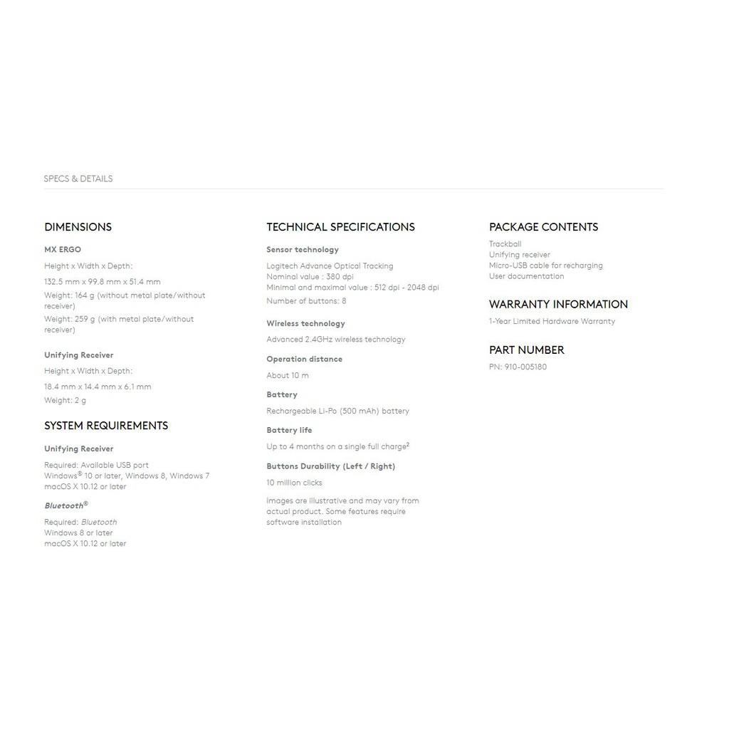 Logitech MX ERGO Wireless Trackball Mouse | 1 year warranty | 910-005180