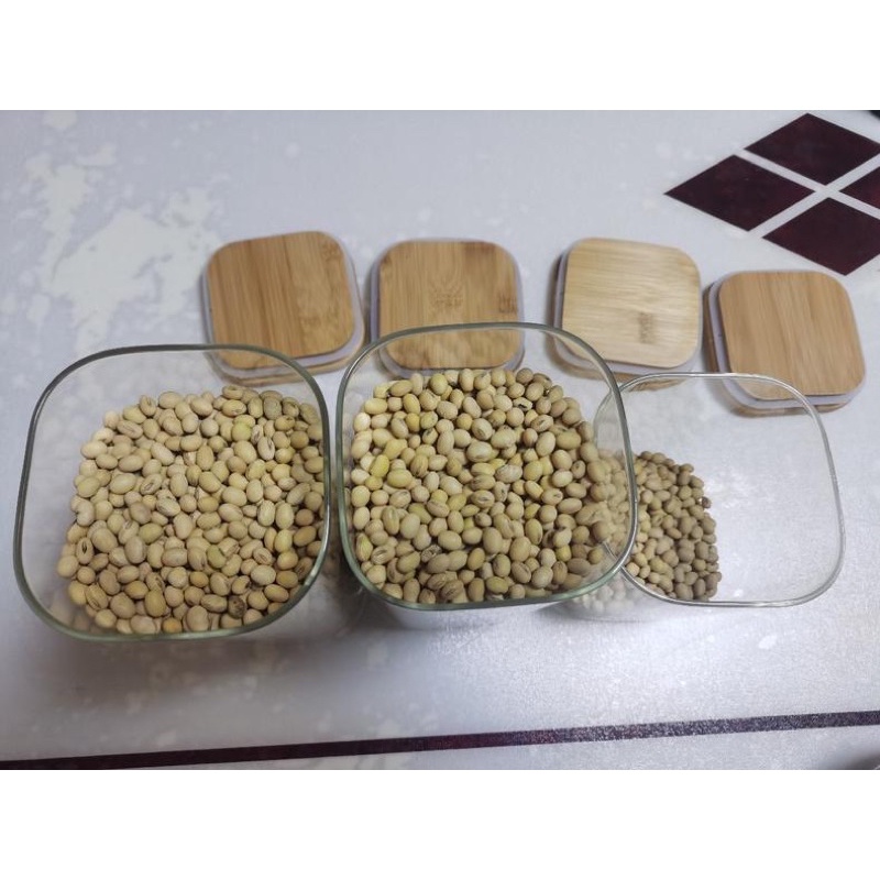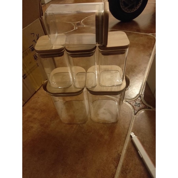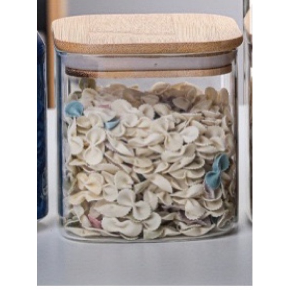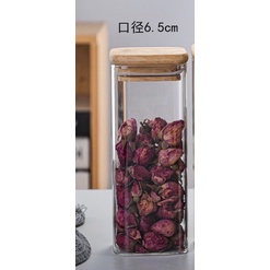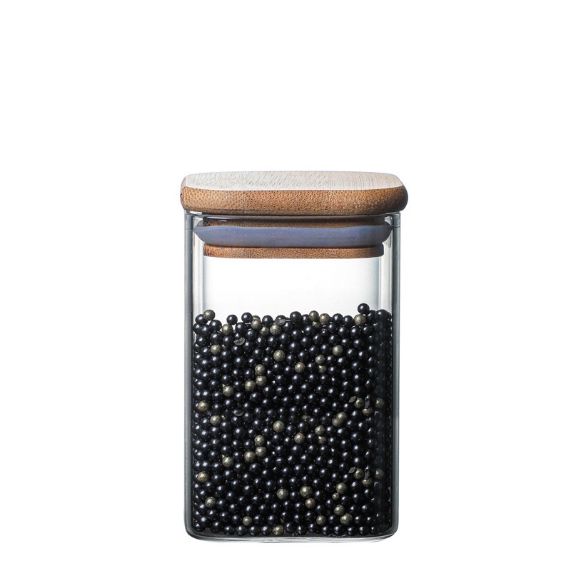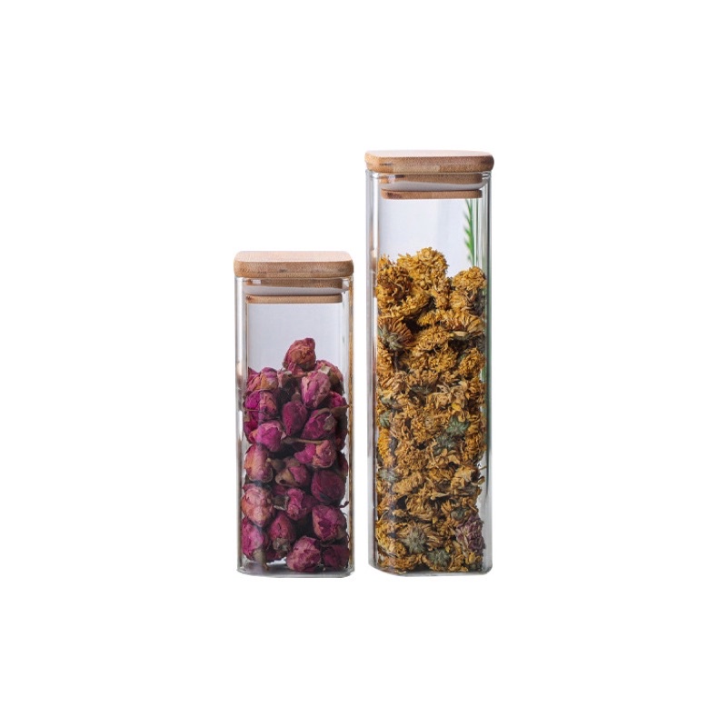 Square glass jars, square glass boxes, square glass jars with wooden lids for food storage