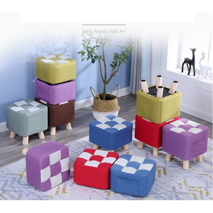 Square Stool/Solid wood Small Stool/Cushion Stool( Bangku Kecil Kusyen 4 Kaki)