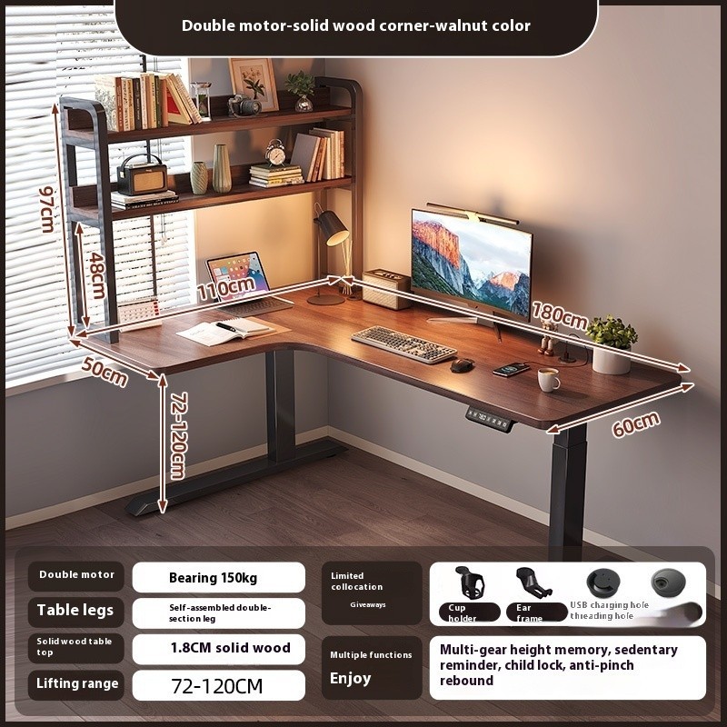 Ssr Solid Wood Electric Lift Desk L-shape Table Computer Deskt E-sports Table Study Office Table
