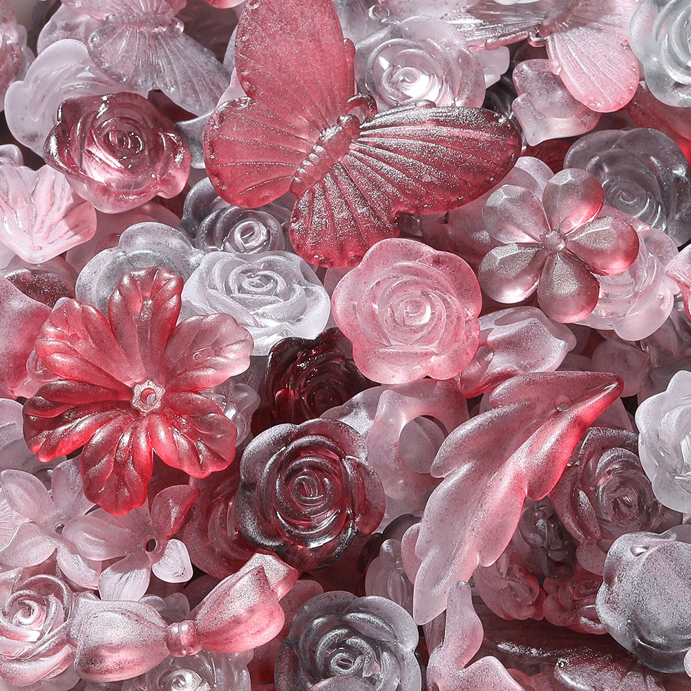 St. Kunkka 20g Mixed Color Acrylic Beads Frosted Irregular Mixed Material Package Butterfly Leaves Flowers Suitable for DIY Jewelry Making Necklace Bracelet