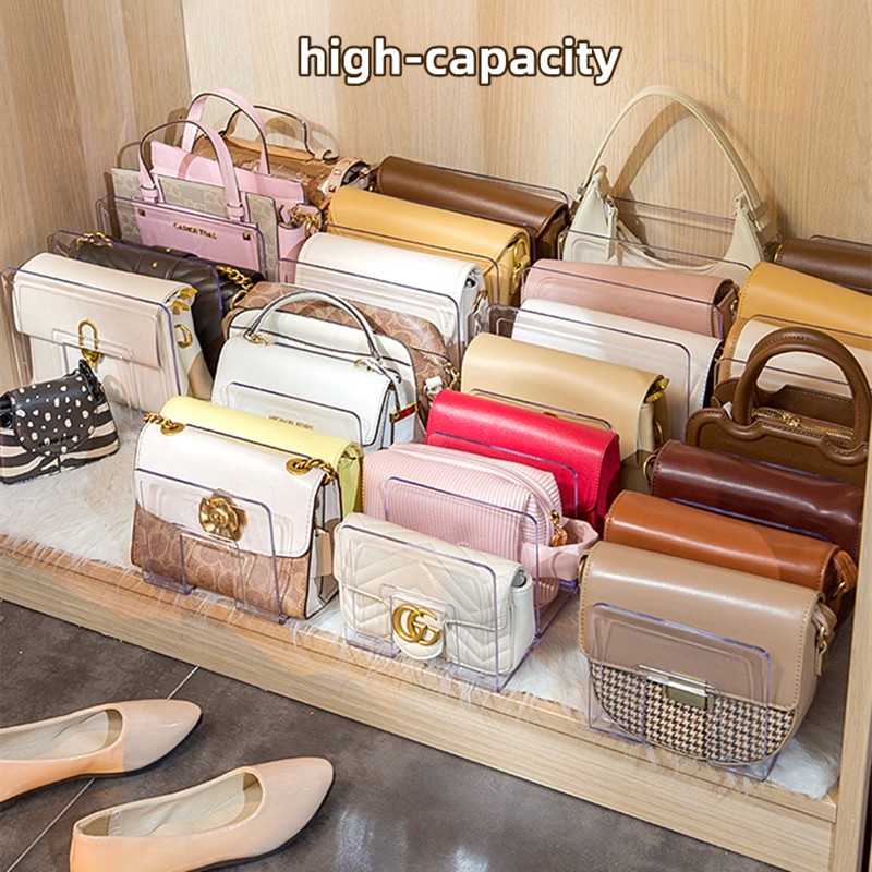 Stackable Bag Storage Box Transparent Divider Handbag Storage Rack Wardrobe Organizer Sorting Cabinet