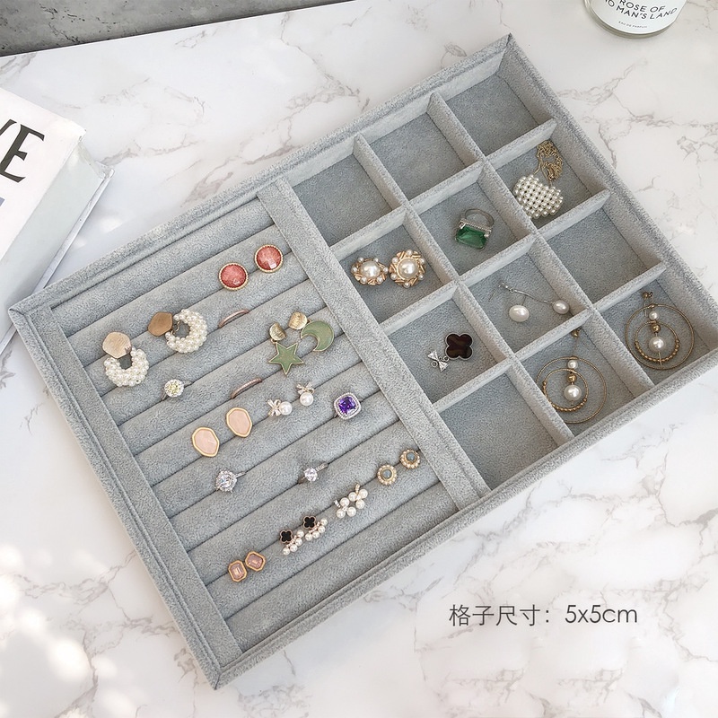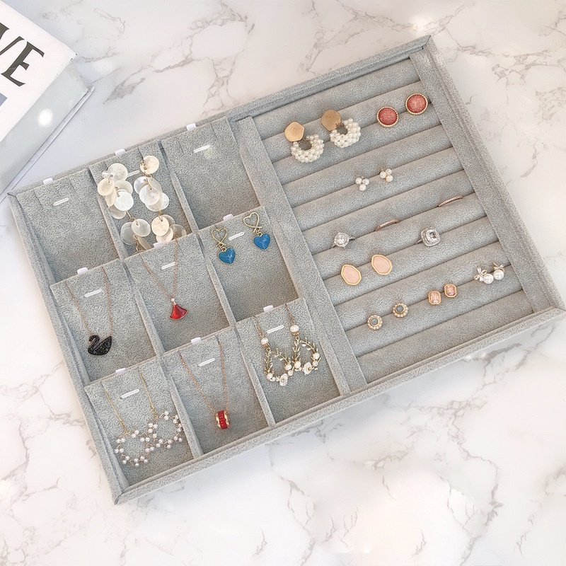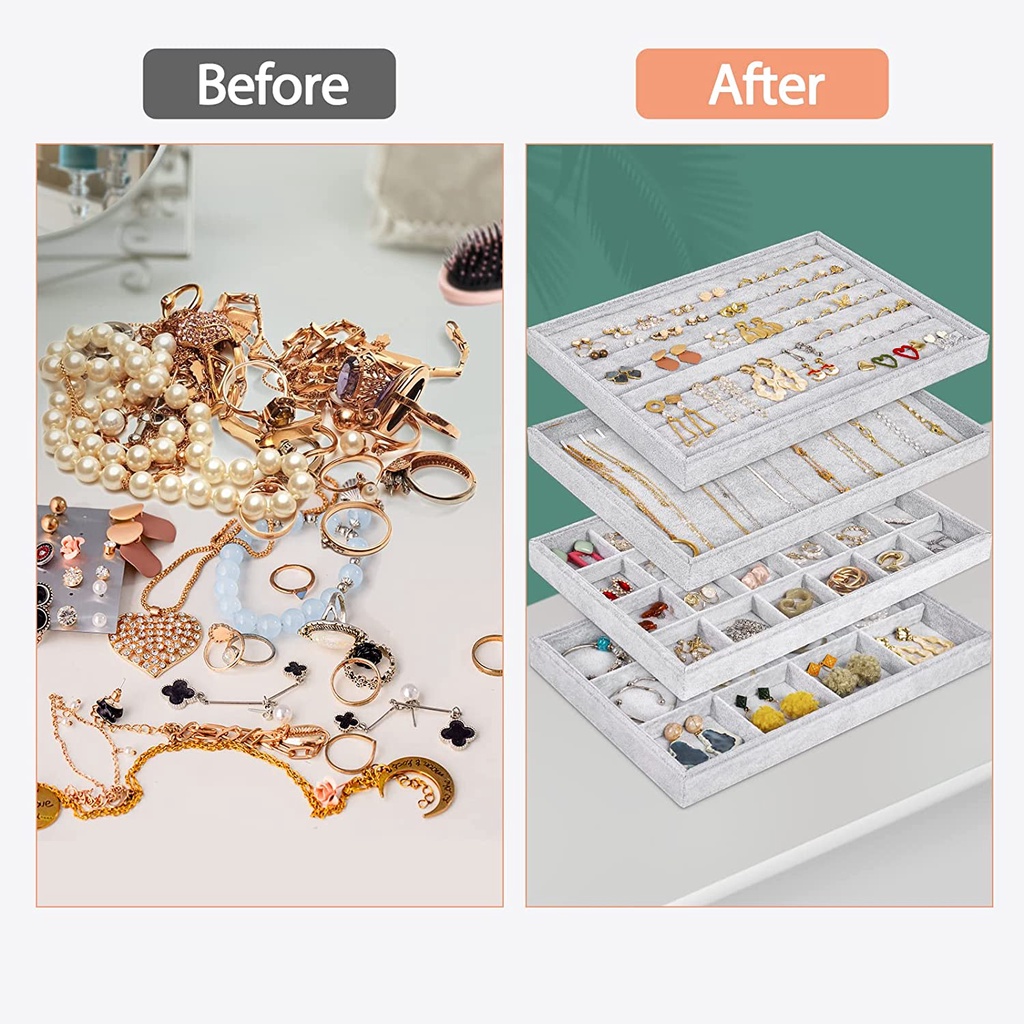 Stackable Jewelry Organizer Trays Velvet For Drawers Large Jewelry Storage Display Tray for Dresser Earring Necklace Bracelet Ring Showcase Holder Organizer Set Gift For Women Girl