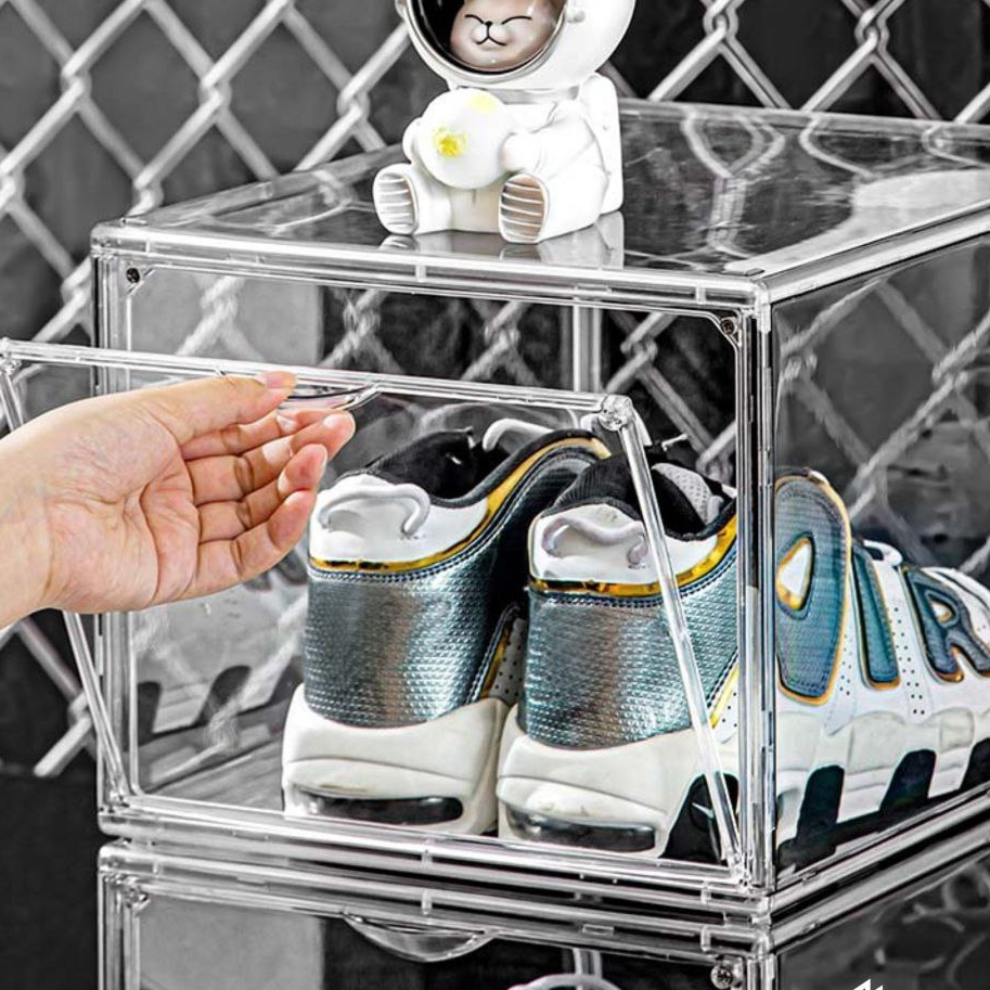 Stackable Shoe Box Transparent Shoe Rack Big Capacity Magnetic Acrylic Display Storage Space Saving Shoes Cabinet