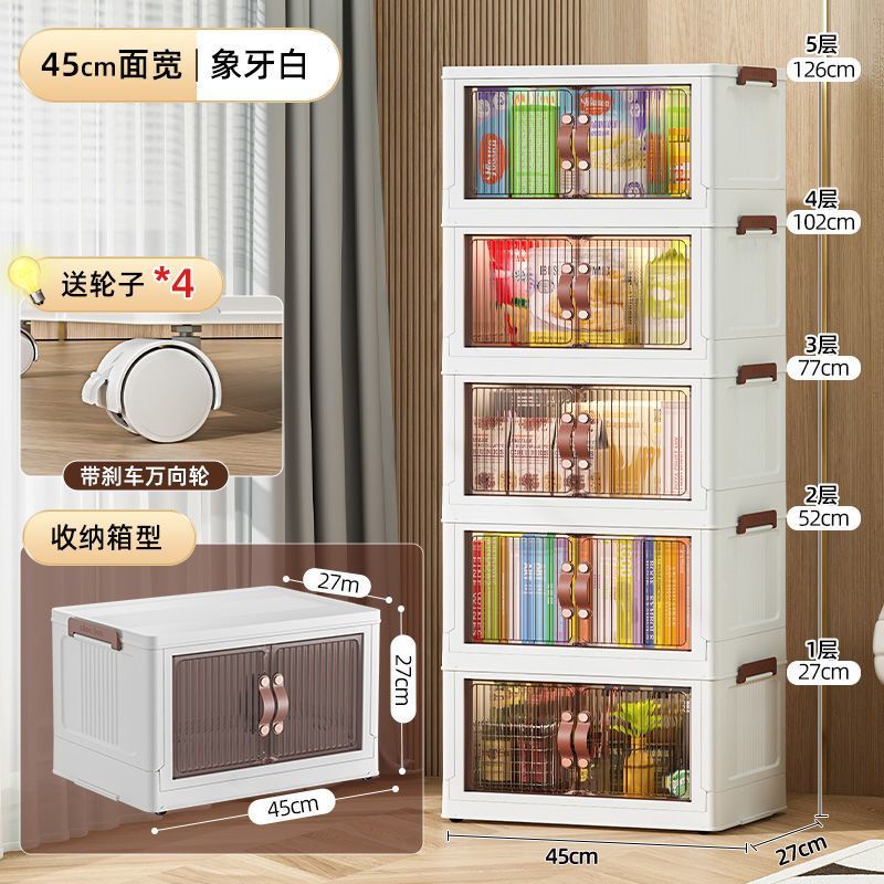 Stackable Storage Boxes Double Doors Plastic Storage Box Collapsible Organizer with Wheels Large Folding Storage Containers