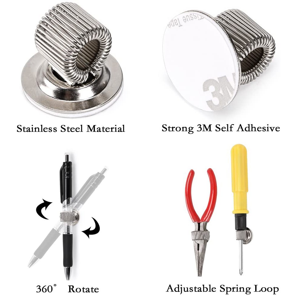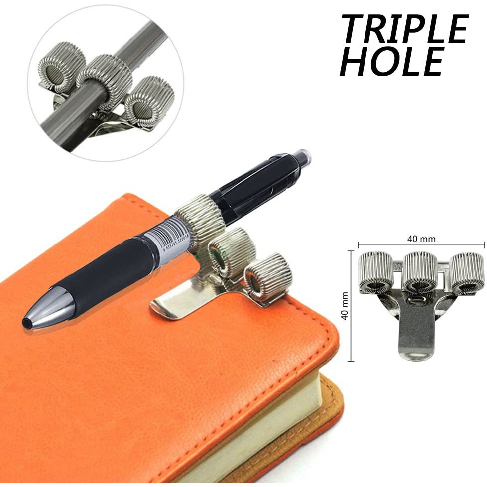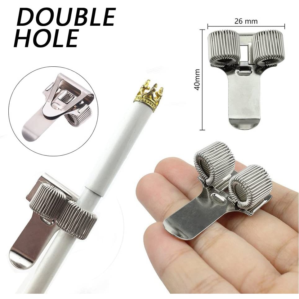 Stainless Pen Holder Clip for Notebook and Clipboard with Spring Fits Almost All Pen Size, Use in Home Office Kitchen Car
