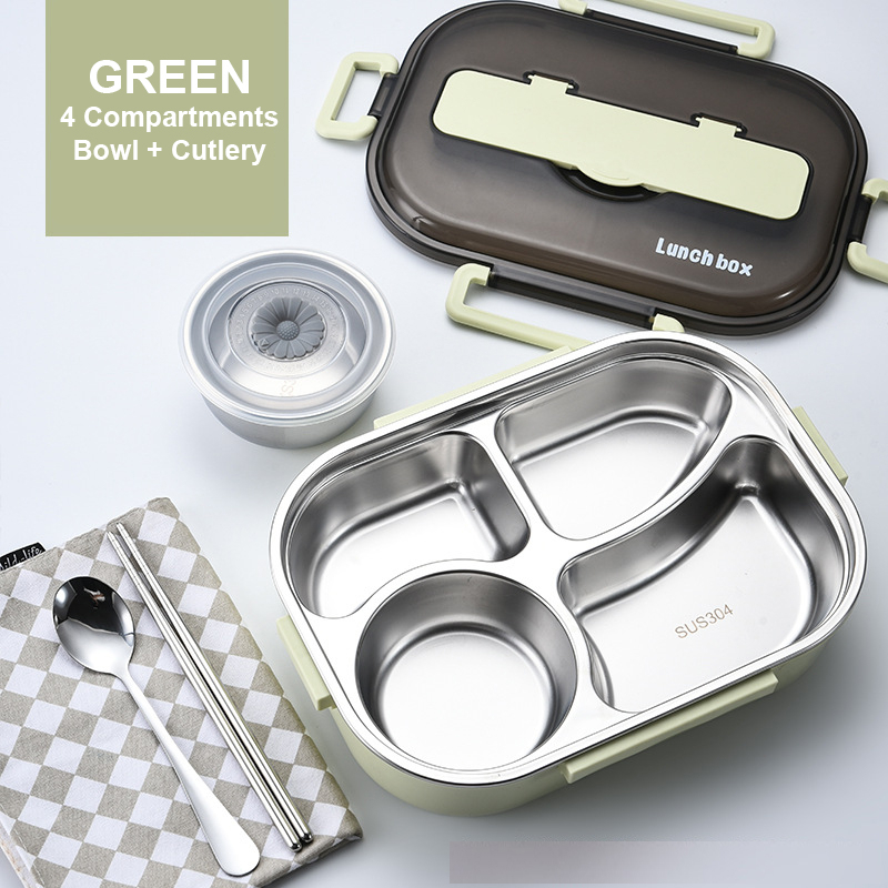 Stainless Steel 304 Bento Box with Soup Bowl and Cutlery Thermos Thermal Lunch Box 1500ml