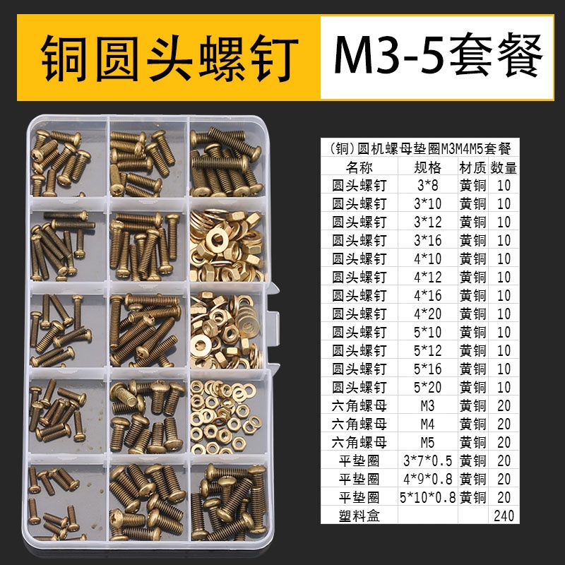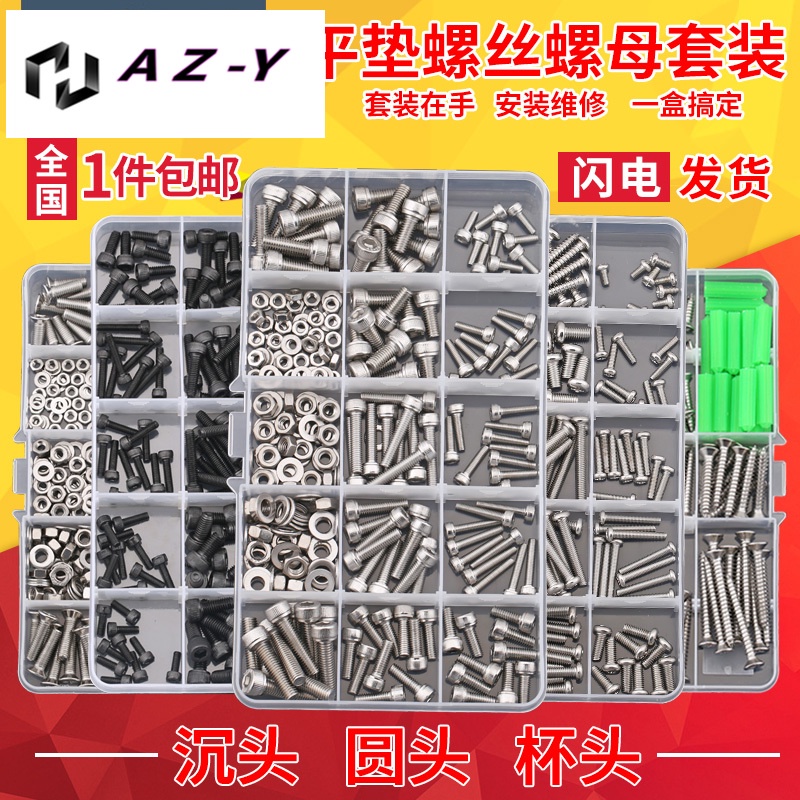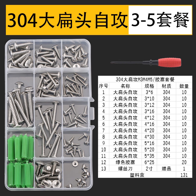 Stainless Steel 304 Screw Nut Set Combination Boxed M3M4M5 Household Flat Head Round Self-Tapping Repair Screws