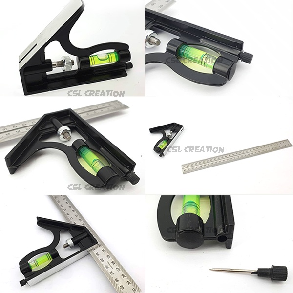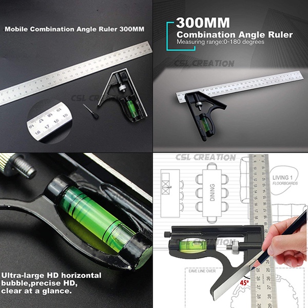 Stainless Steel Combination Square Ruler Level Gauge Angle Metric Ruler Adjustable Angle Ruler 300mm