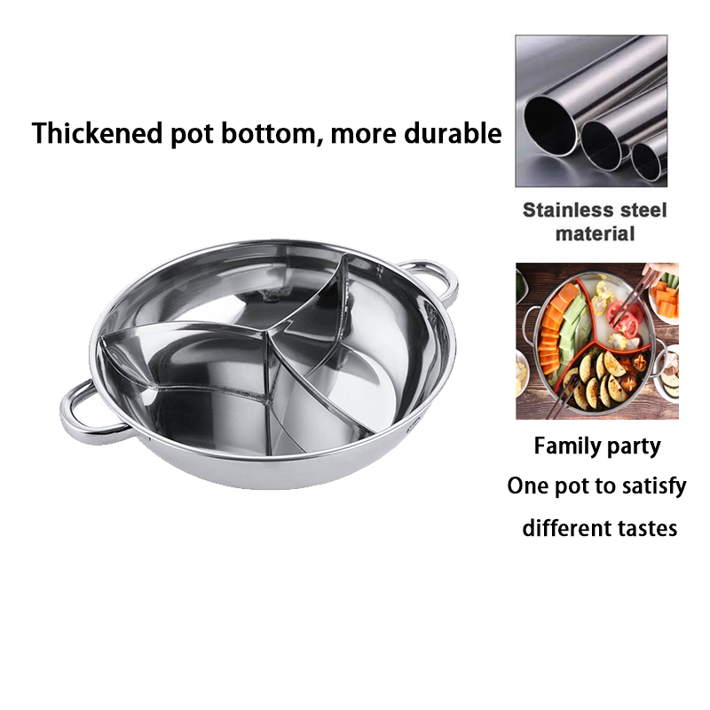 Stainless Steel Cookware Three-Bowl Divider Pot, Two-Handled Pot, 3 Dividers, Hot Pot, Wok, Cooking Pot