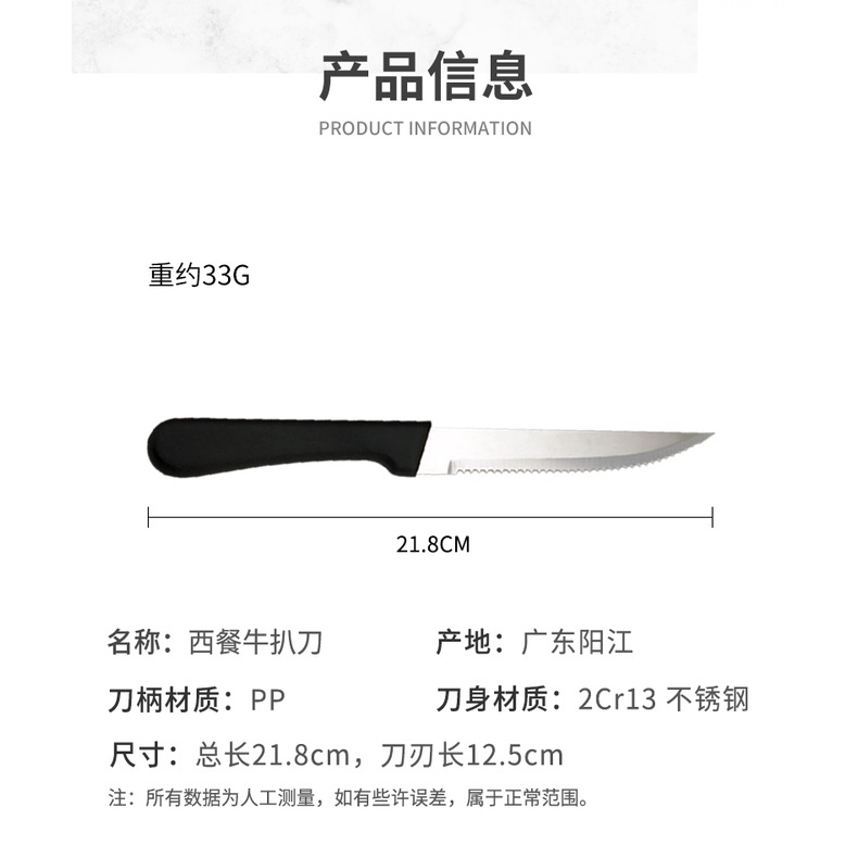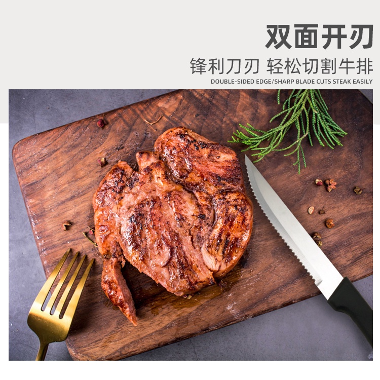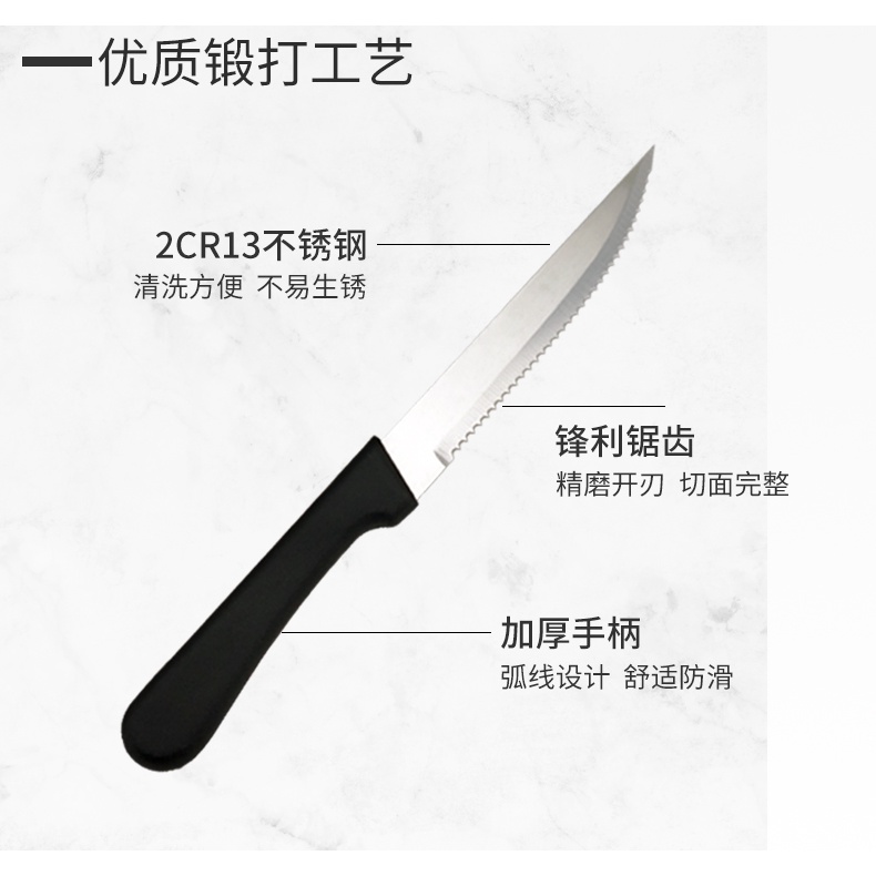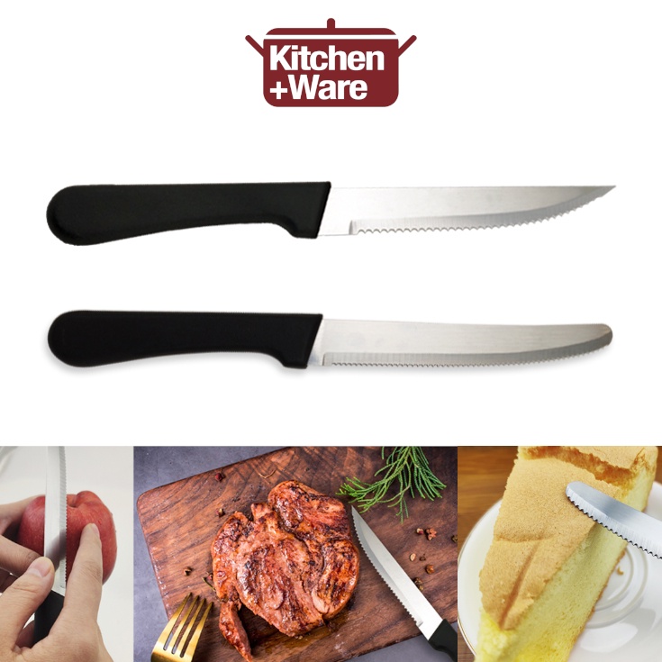 Stainless Steel Deluxe Steak Knife / Cake Knife with Black Polypropylene Handle | Bread Knife Safety Knife Fruit Knife
