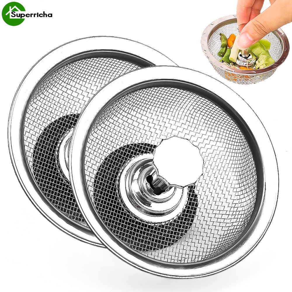 Stainless Steel Drain Mesh Filter / Kitchen Sink Strainer with Stopper / Universal Waste Drain Hole Trap / Replacement Sink Drain Basket with Knob / Bathroom Floor Drains Catcher
