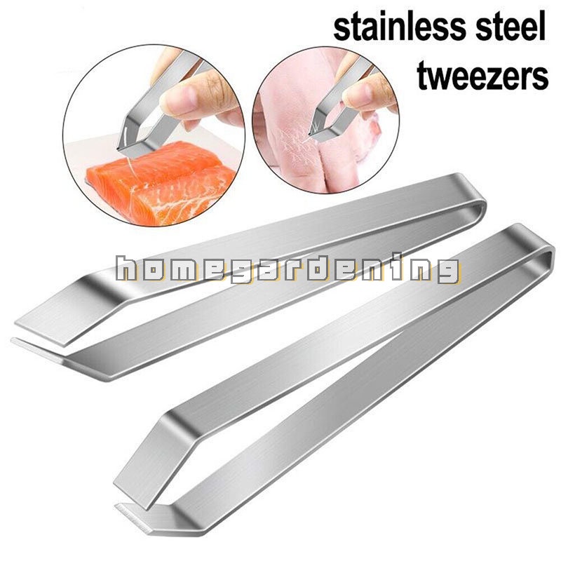 Stainless Steel Fish Bone Tweezers Flat Slant Tongs Pliers Hair Pliers Pin Bone Removal Tool for Debone Salmon Bass Catfish