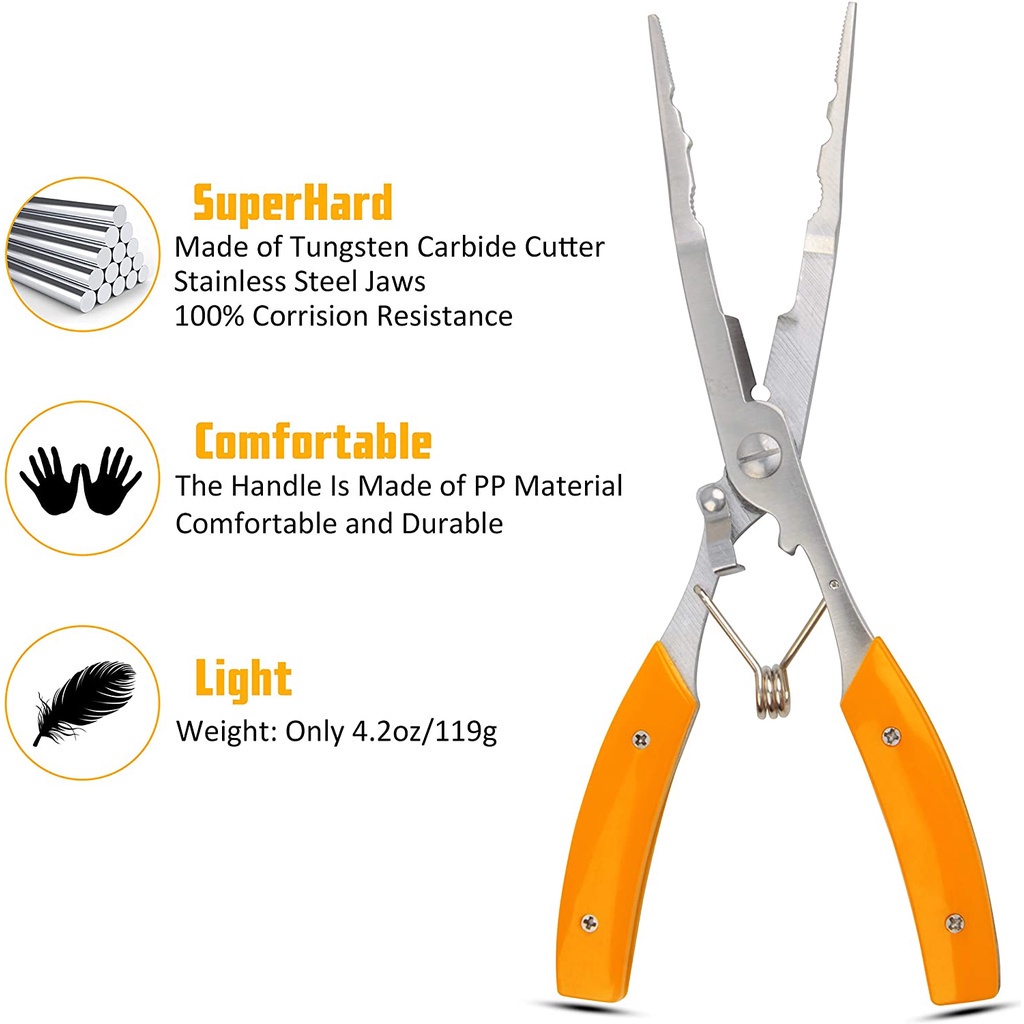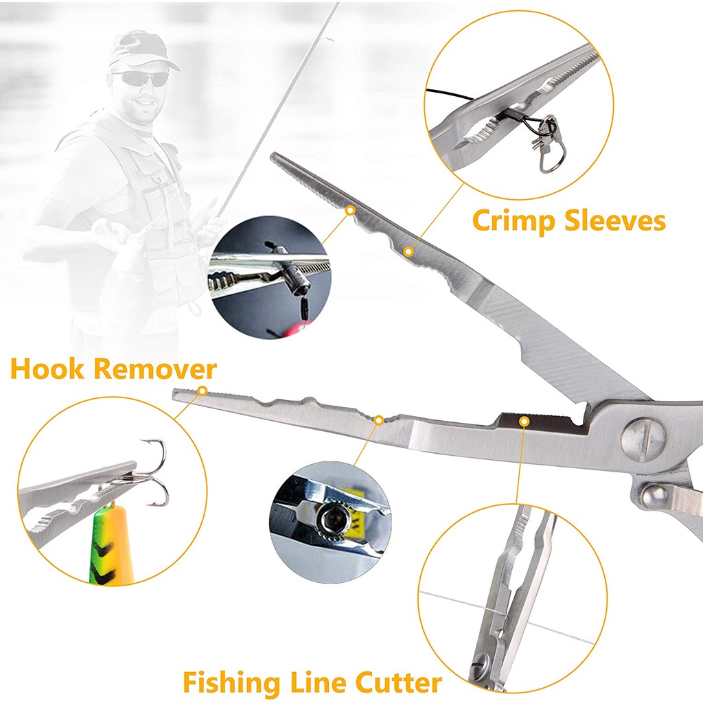 Stainless Steel Saltwater Fishing Pliers Long Nose Hook Remover Scissors Line Cutter Split Ring