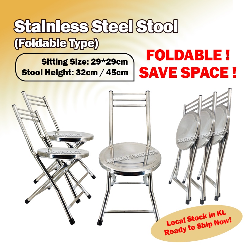 Stainless Steel Stool Metal (Foldable) Chair Indoor Outdoor (32cm 45cm) Foldable Chair