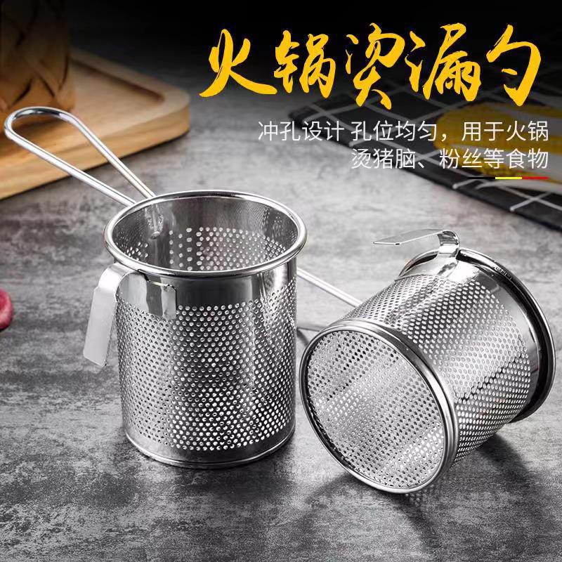 Stainless Steel Strainer Hot Pot Strainer with Hook Strainer Commercial Kitchen Spicy Hot Strainer Fan Spoon Tube Frying Strainer Cooking Noodles Noodle Net Fryer Frying Basket