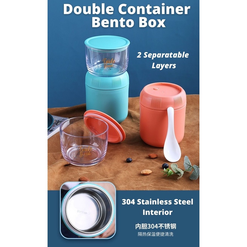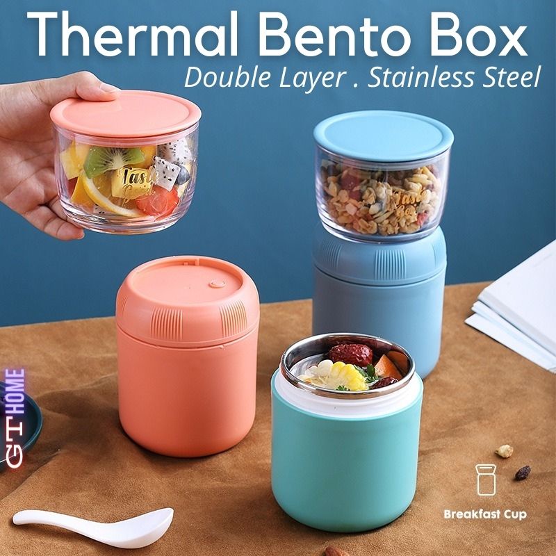 Stainless Steel Thermal Bento Lunch Box / Double Layers / Leak Proof
