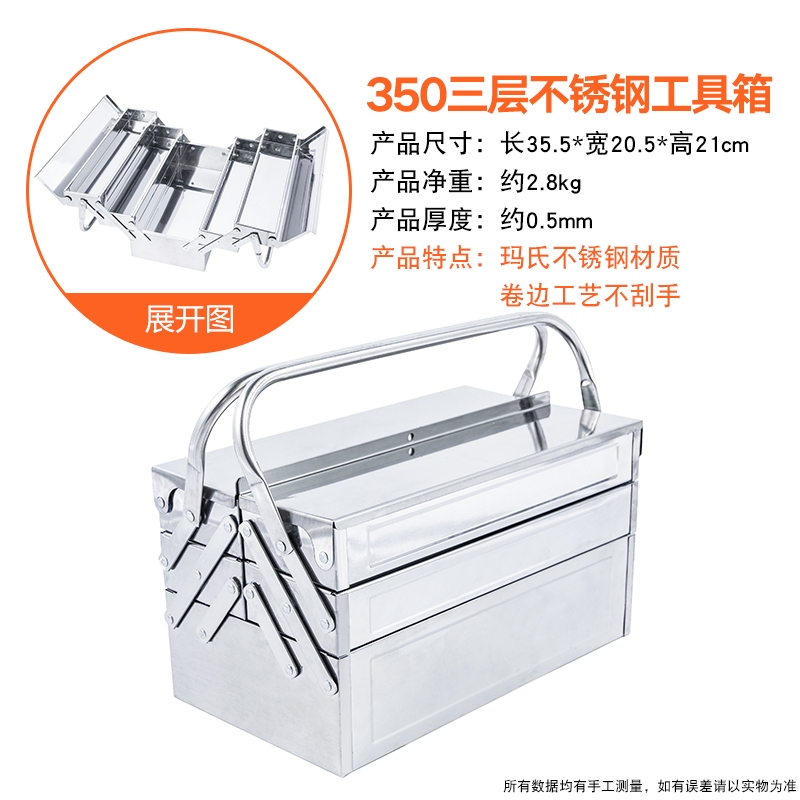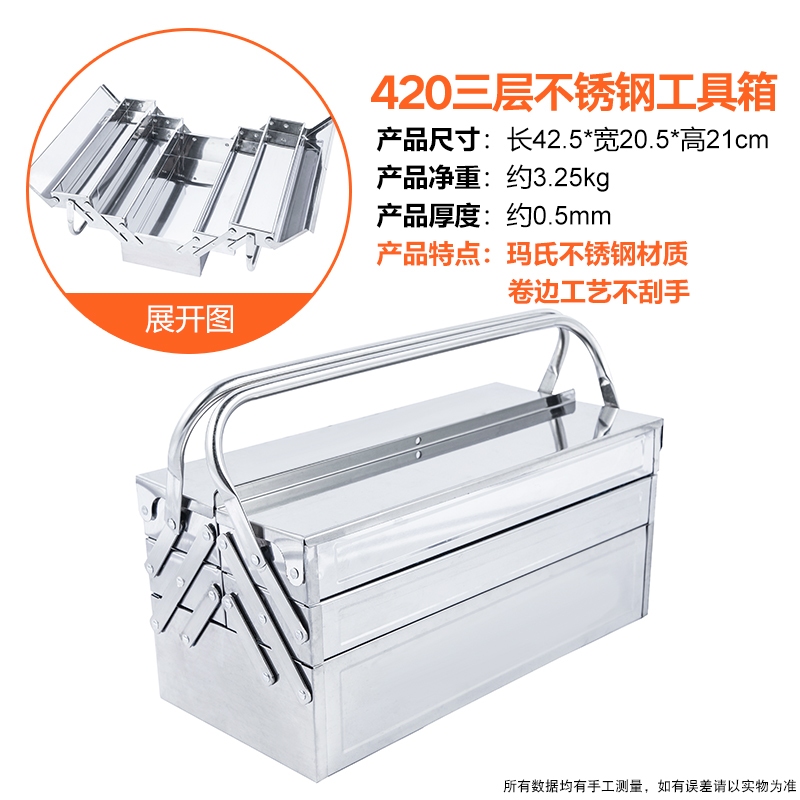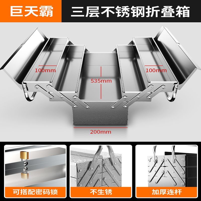 Stainless Steel Toolbox Storage Box Set Portable Multifunctional Folding Hardware Industrial Vehicle