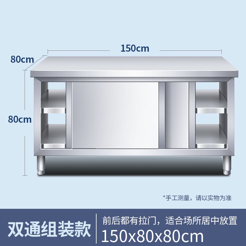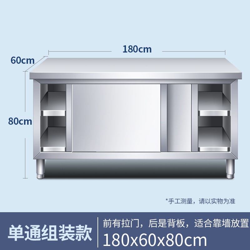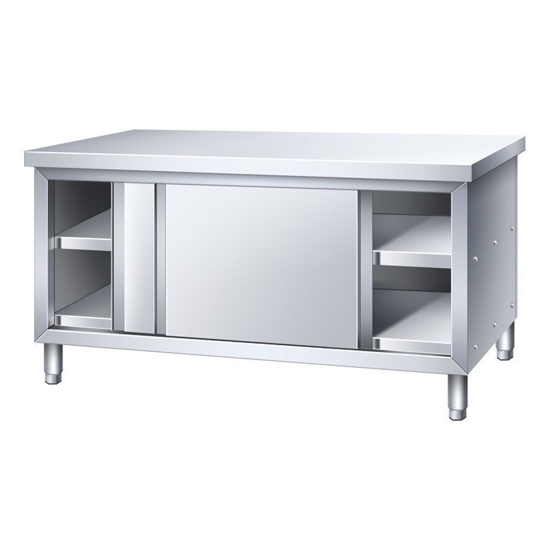 Stainless steel commercial stove with sliding door workbench, kitchen operation table, multi-layer storage cabinet, cutting table and loading table