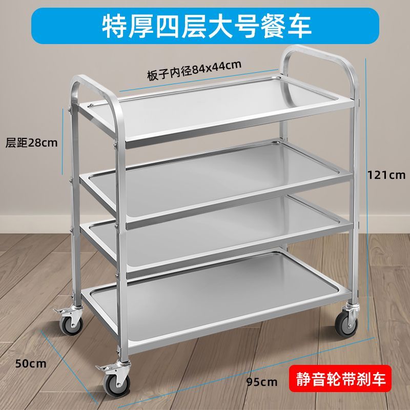Stainless steel trolley with wheels food trolleyThickened Food Truck Stainless Steel Trolley Kitchen Serving Kitchen Appliance With Lockable Wheels