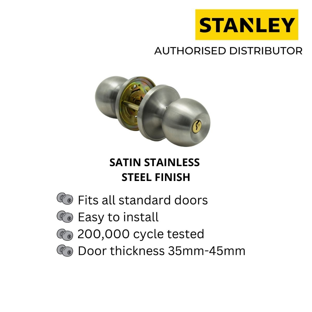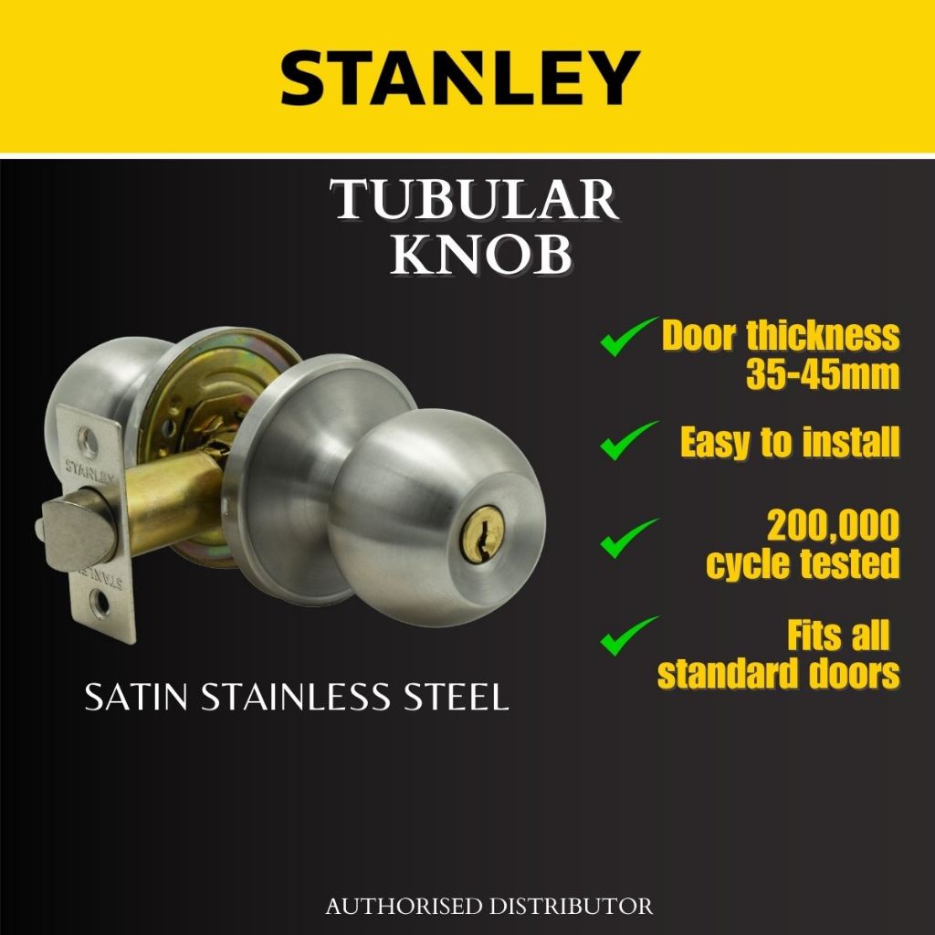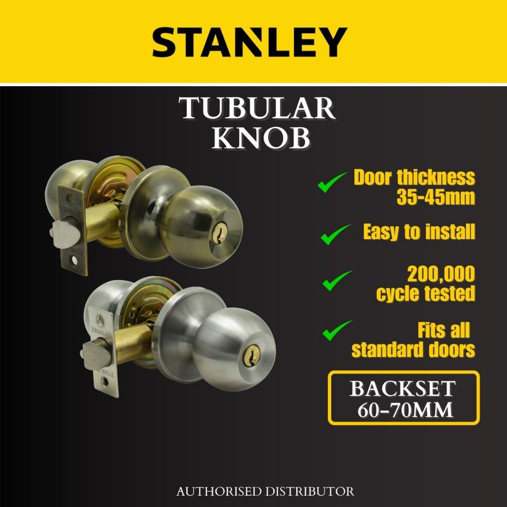 Stanley Tubular Lock/ Tubular Knob/ Backset 60/70mm Entrance/ Round Knob/ Room Door Lock/ HDB lock/ BTO lock