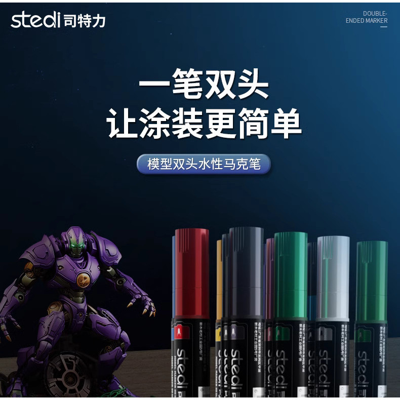 Stedi Dual Brush Water-based Marker Pen Stedi Dual Brush Water-based Marker Pen Gundam Model Coating Coloring Pen Pointed Flat Tip Complementary Color Water-based Environmentally Friendly Paint Pen paint marker