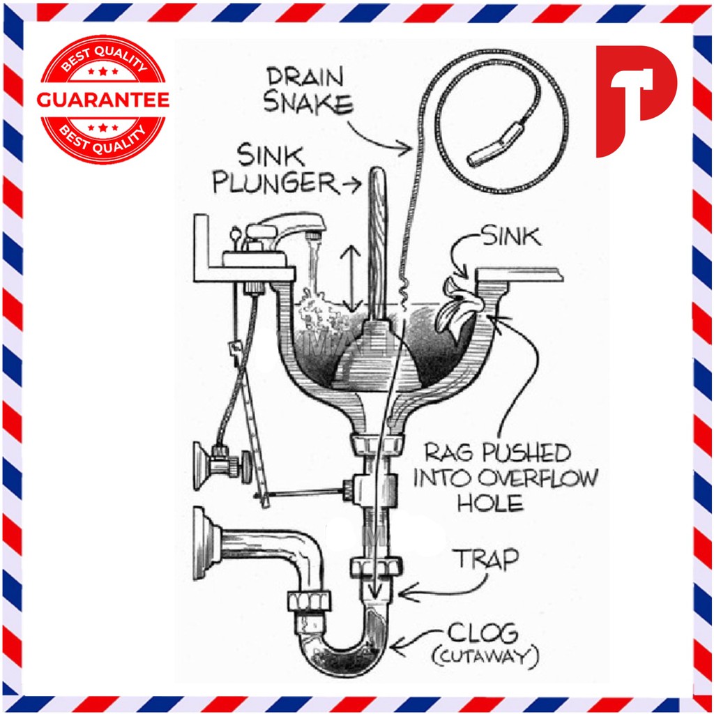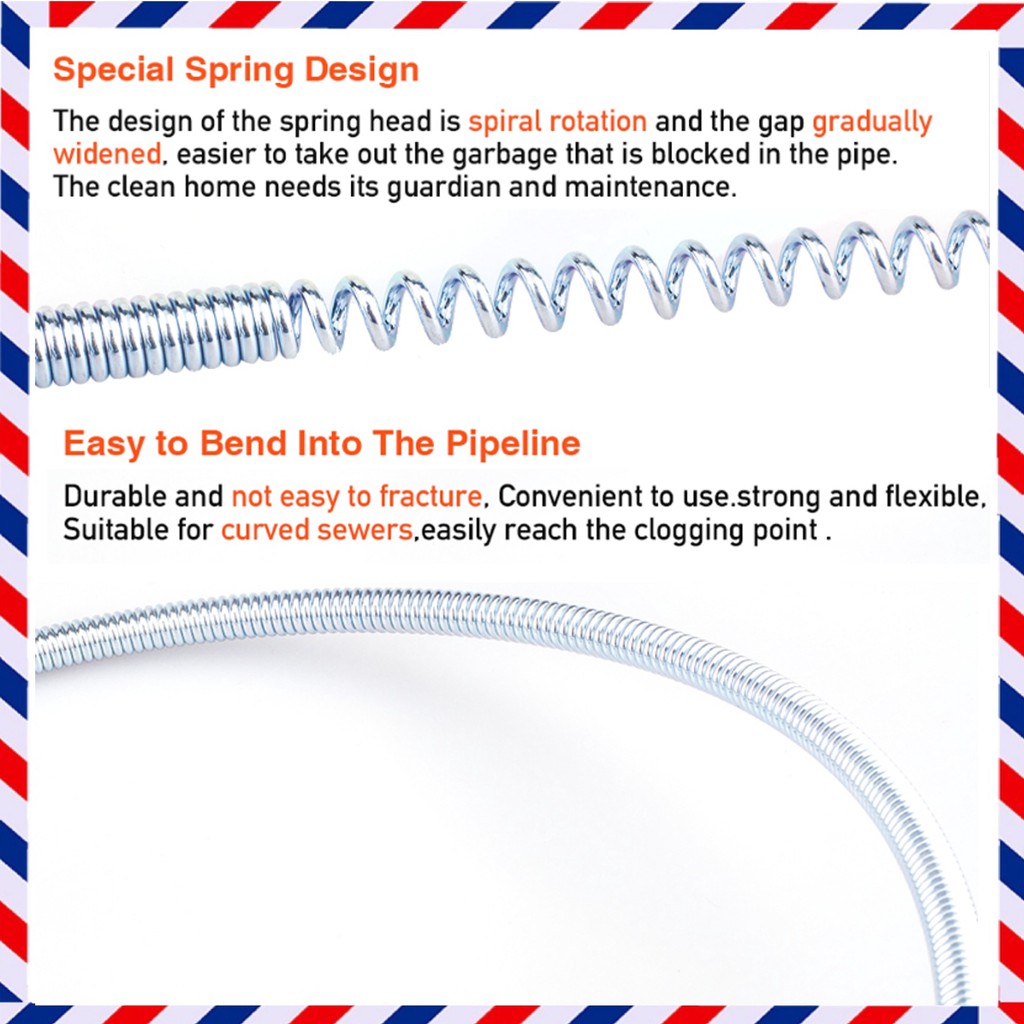 Steel Coiled Drain Sink Cleaner Spring Wire Pipeline Unblocker Plunger Pipe Waste Rod
