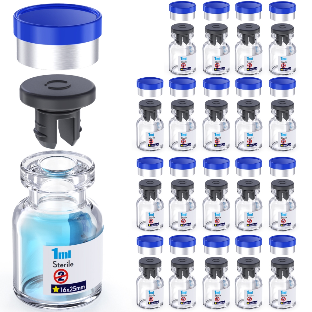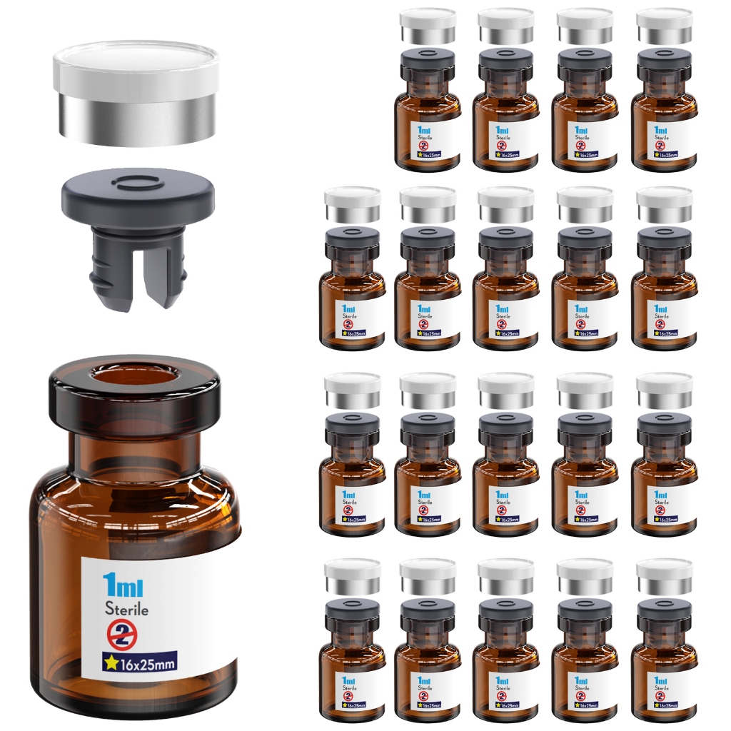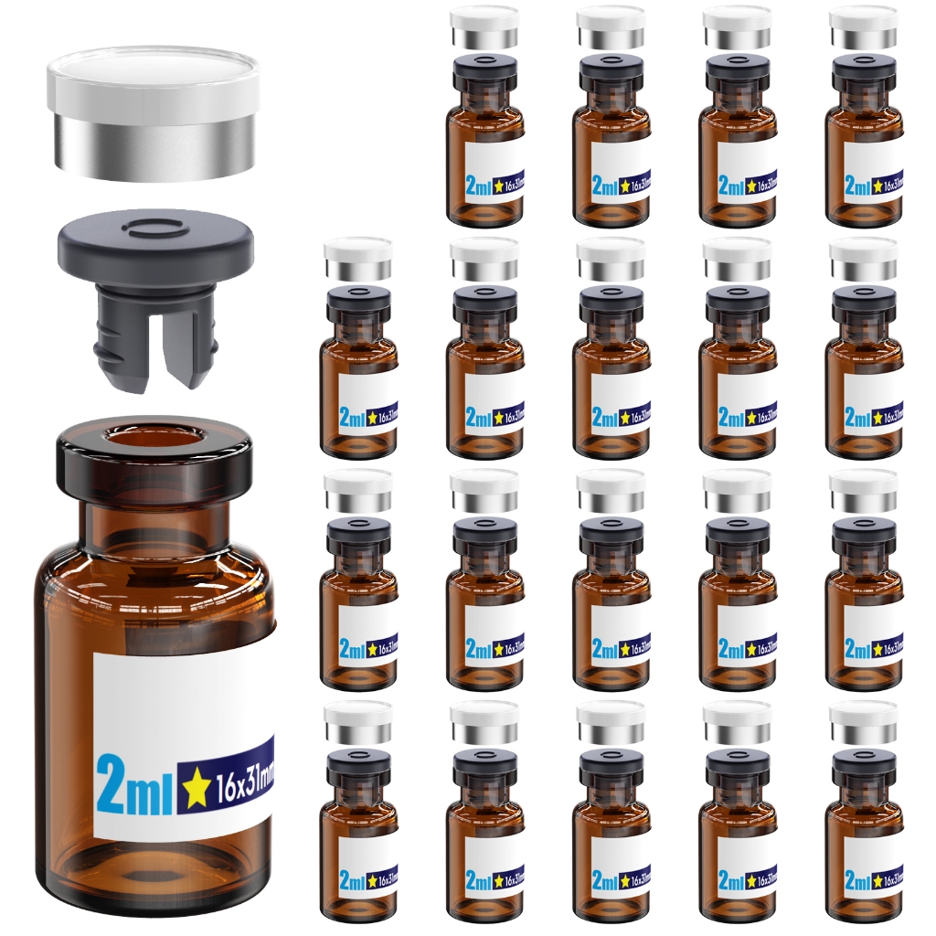 Sterile Glass Vials With Separate Rubber Stopper and Burr-Free Aluminum Plastics Cap,Borosilicate Glass Storage Vial Need to Crimped With Pliers Sterile Packaged 20pcs
