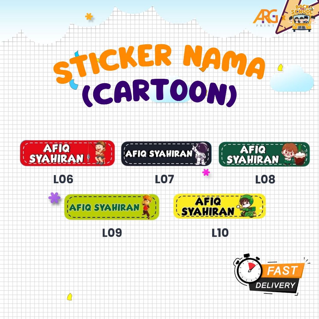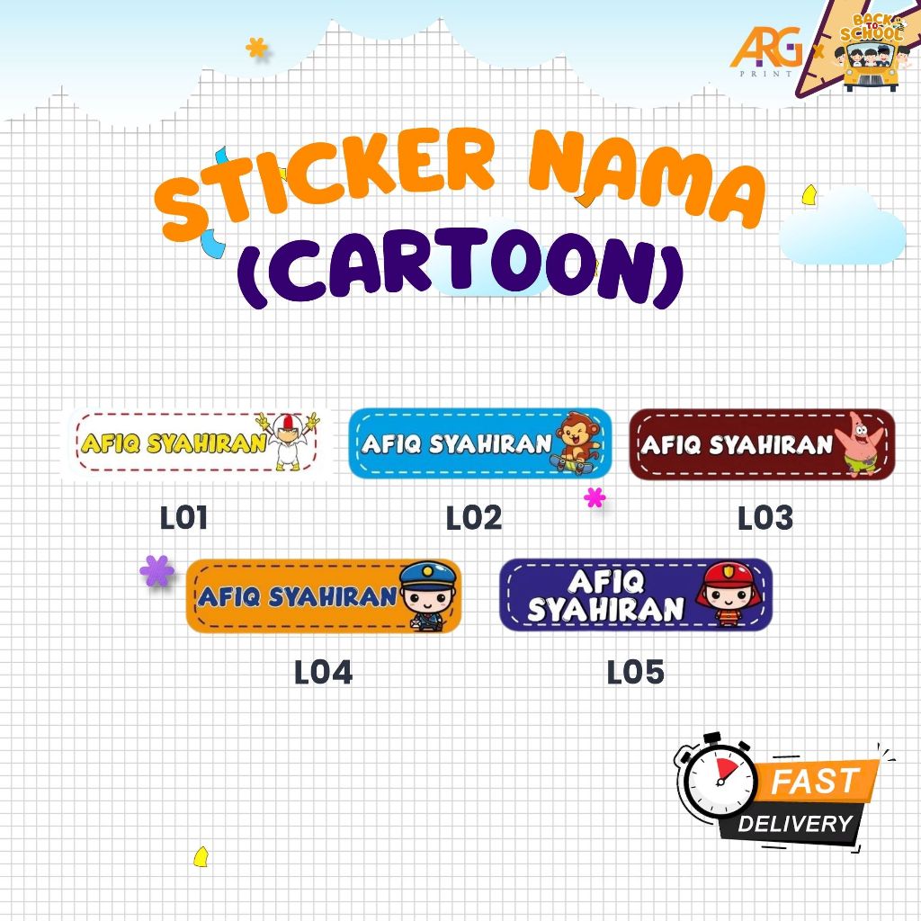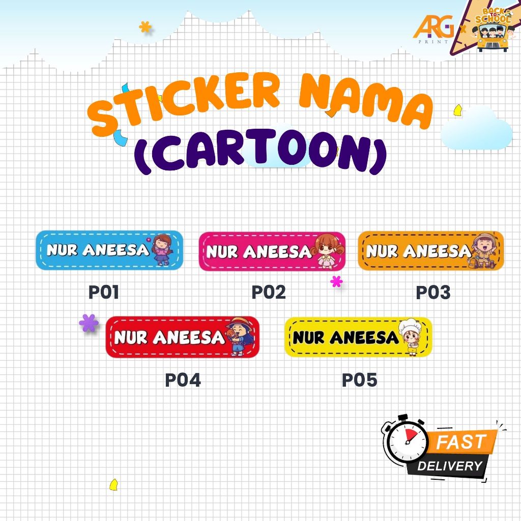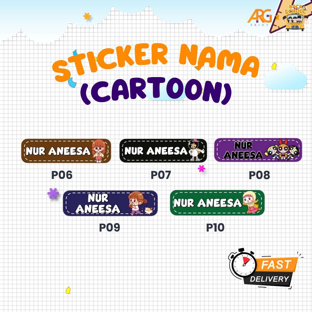 Sticker Nama Murid Design Kartun (Cartoon)