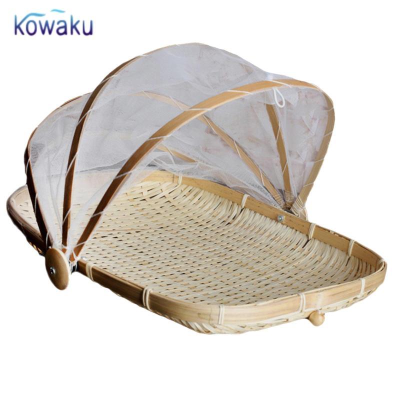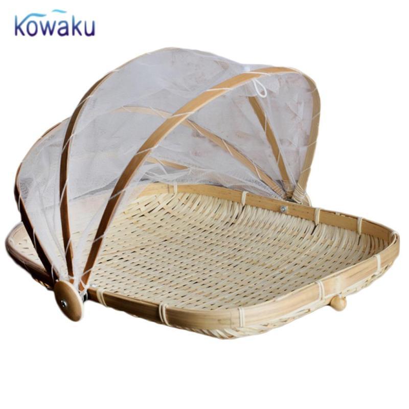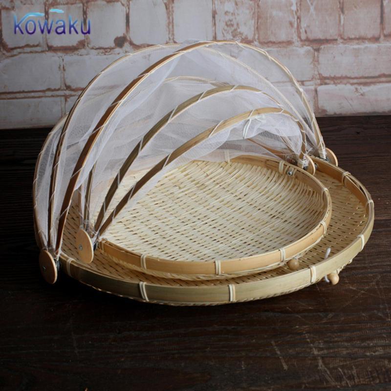 Storage Basket Hand-Woven Tent Net Cover Basket With Mesh Cover Bread Fruit Food Breakfast Display Tray Desktop Kitchen Organizer Tray Picnic Container