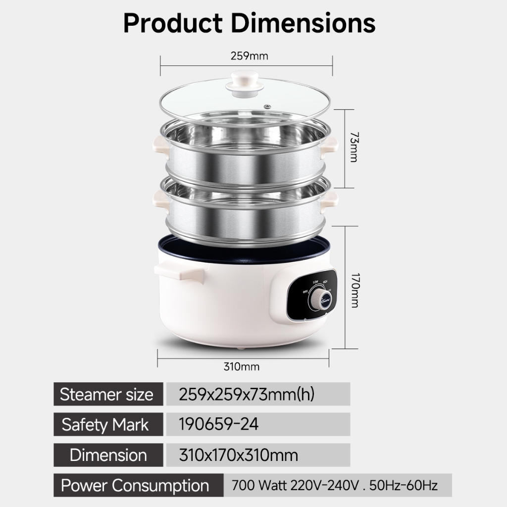 PowerPac 9.5L Multi Function Food Steamer, Multi Cooker with Non-stick inner Pot (PPMC787S/PPEC811S/PPEC813S)