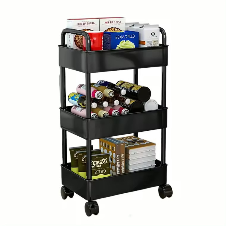 Storage Trolley 3/4 Tier Living Room Kitchen Trolley Storage Rack Shelf with Wheel 4 Tier Trolley