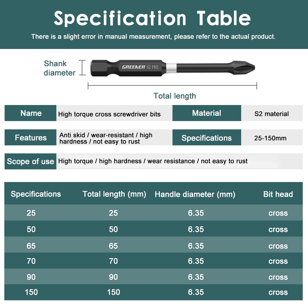 Strong Magnetic Batch Head Cross High Hardness Hand Drill Bits Screw Electric Screwdriver Impact Batch Head Set 20 50 65 70 90 150mm