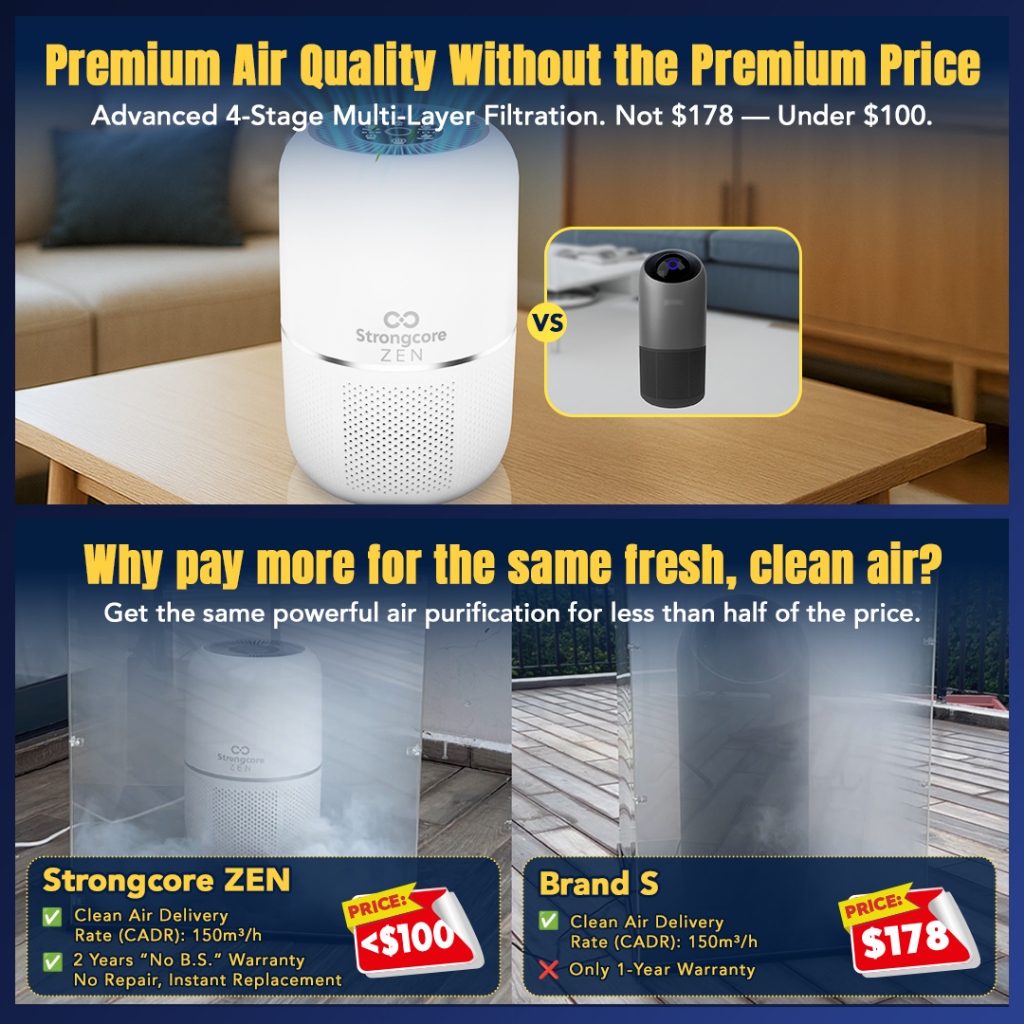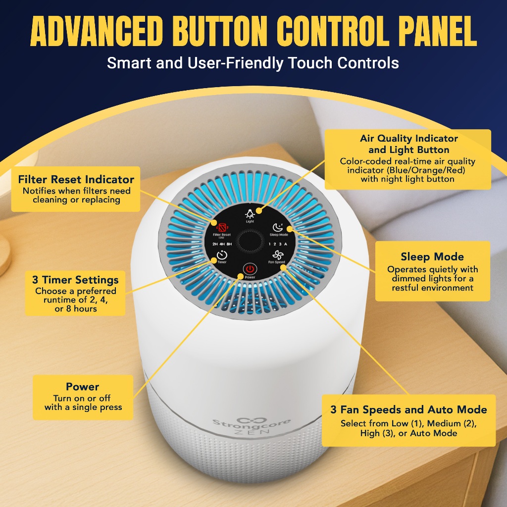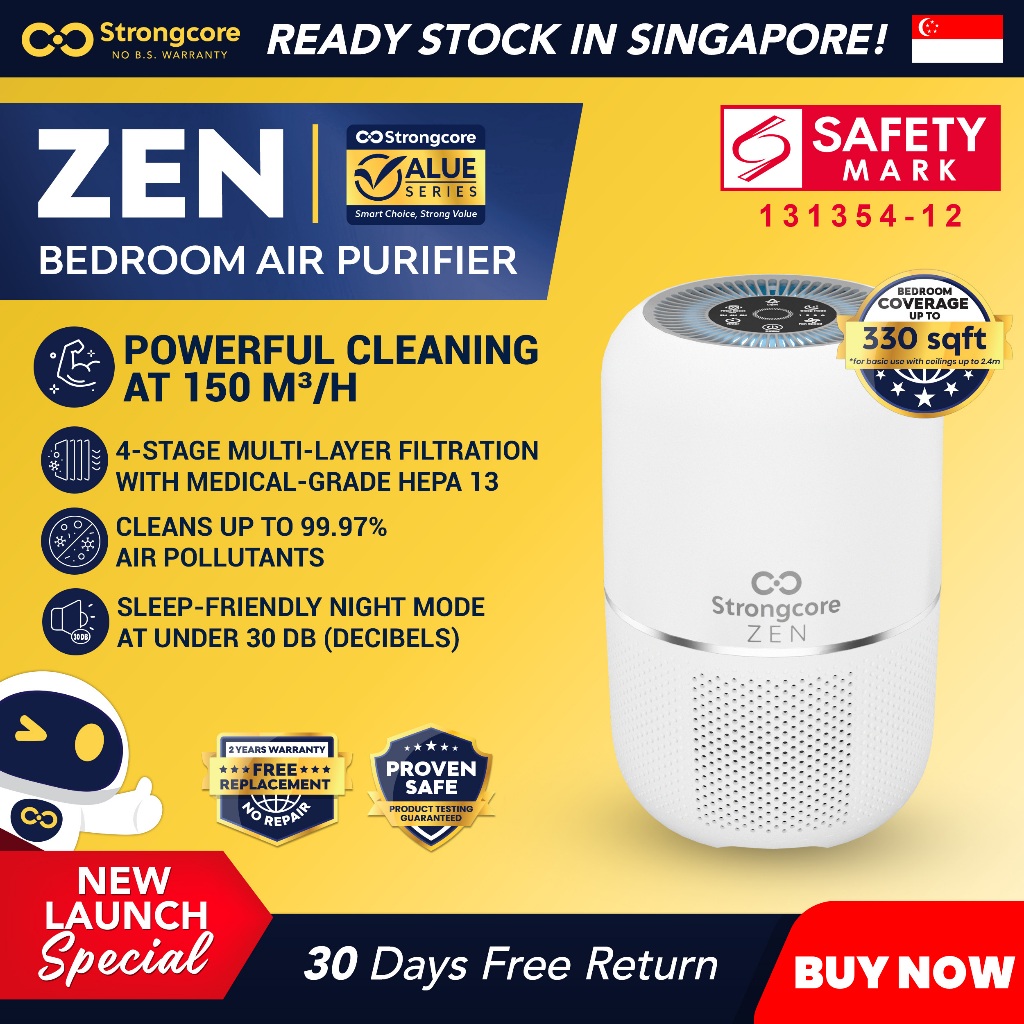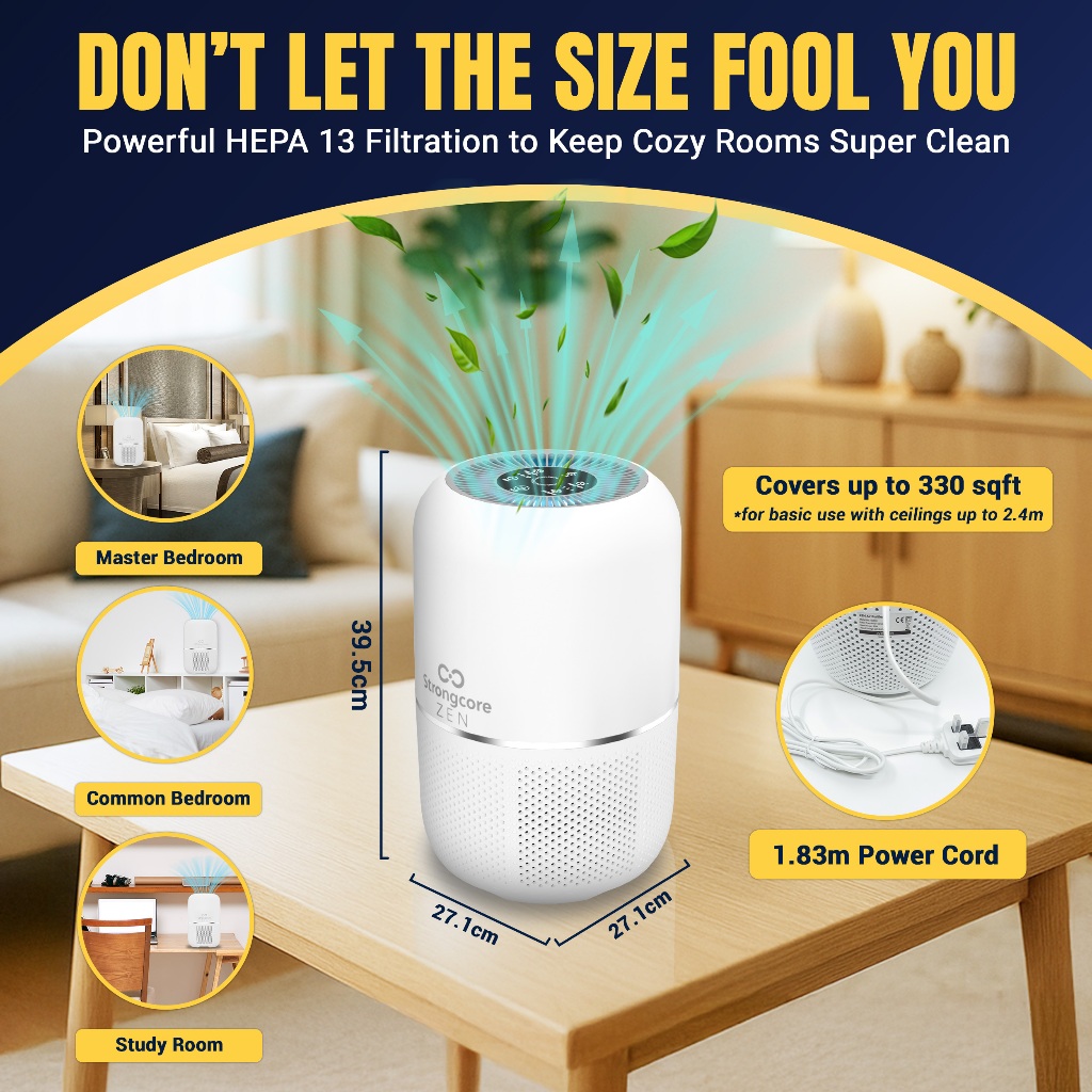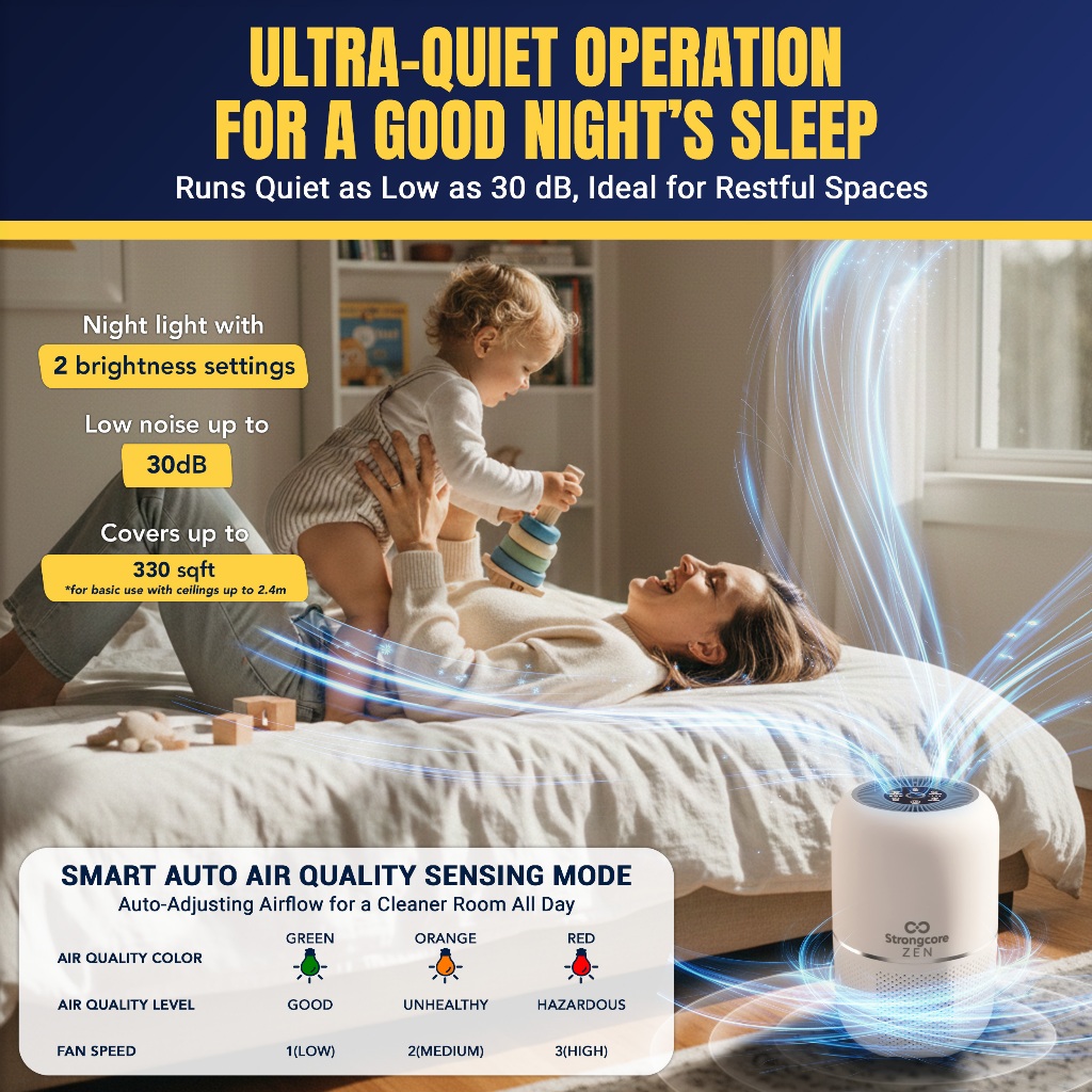 Strongcore ZEN 150m³/h CADR Auto-Sensing Air Purifier, Medical-Grade Multi-Layer HEPA 13, Low Noise