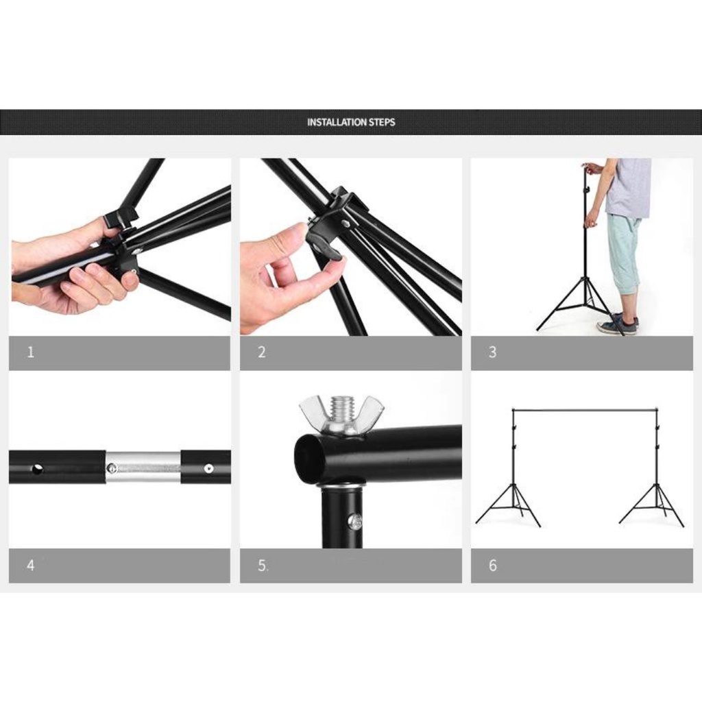 Studio Kit Set Backdrop Stand with Storage Bag & 4 Backdrop Clip 2m x 2m Backdrop Set