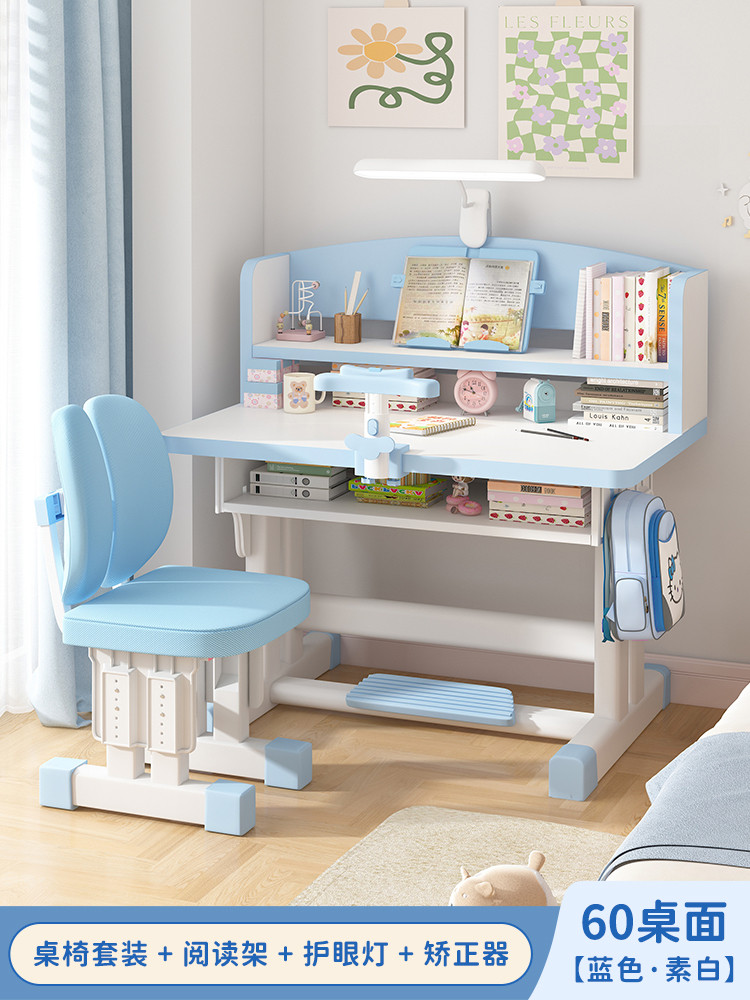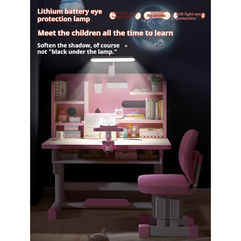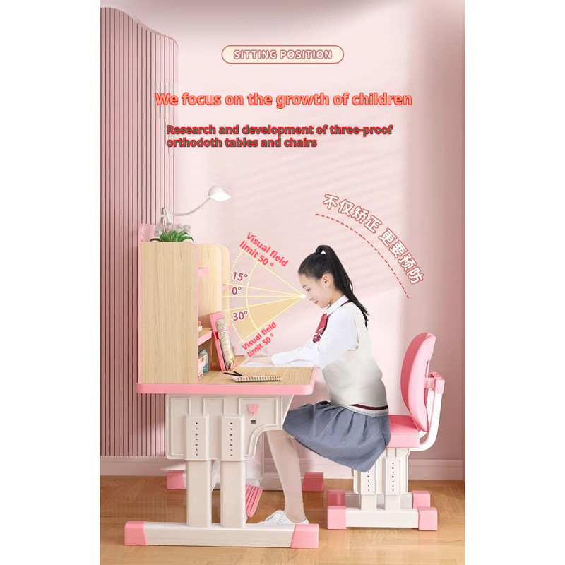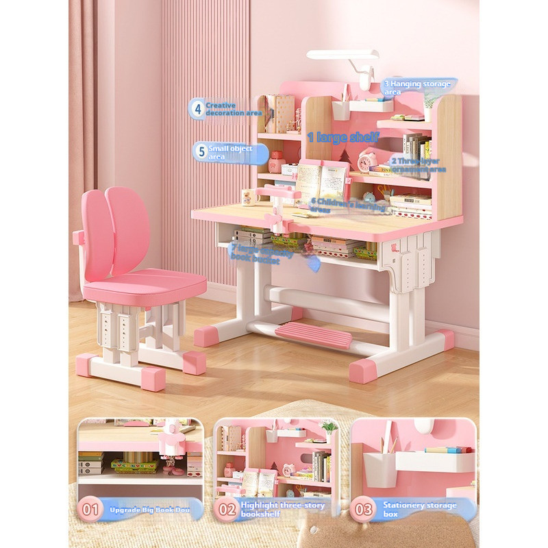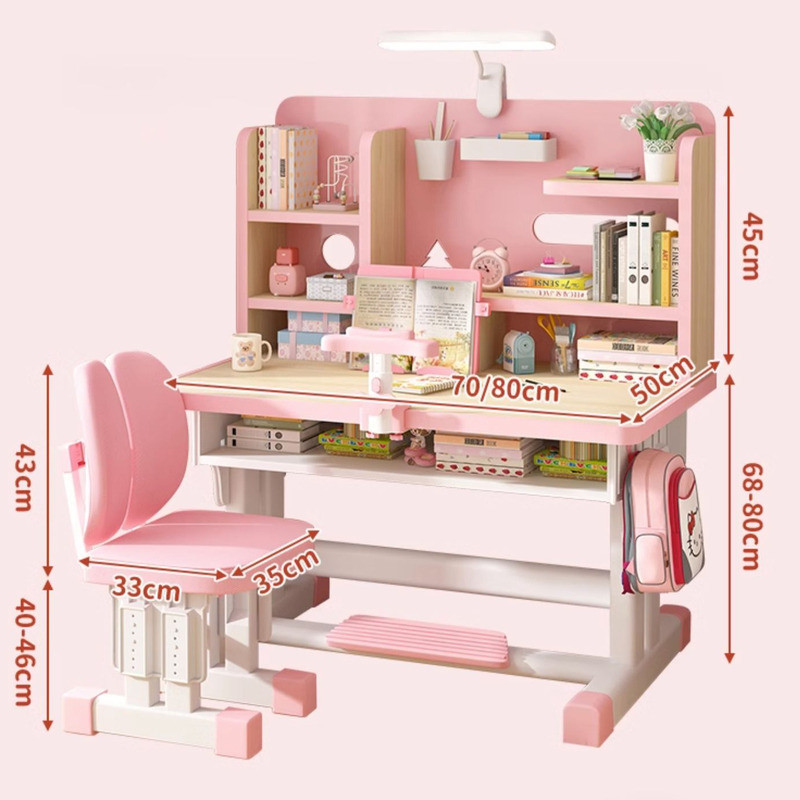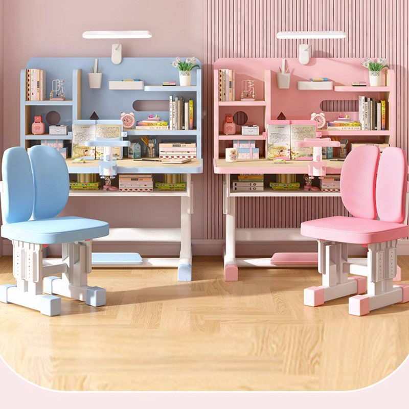 Study Table Ergonomic Height Adjustable Student Study Desk Kids Table And Chair Set With Book Shelf