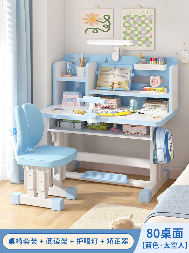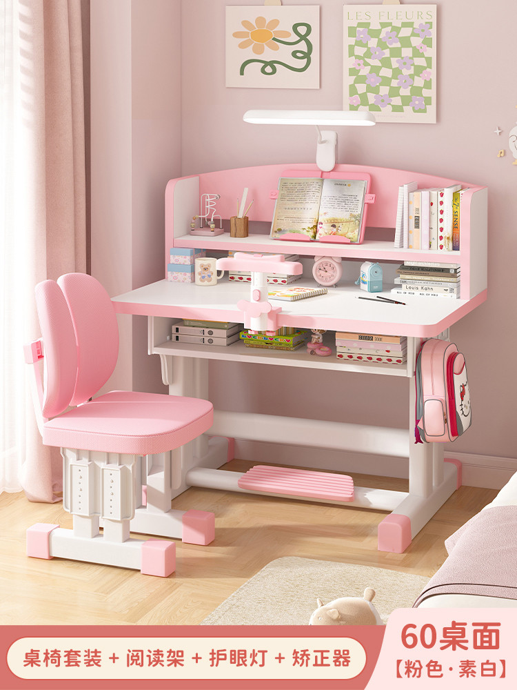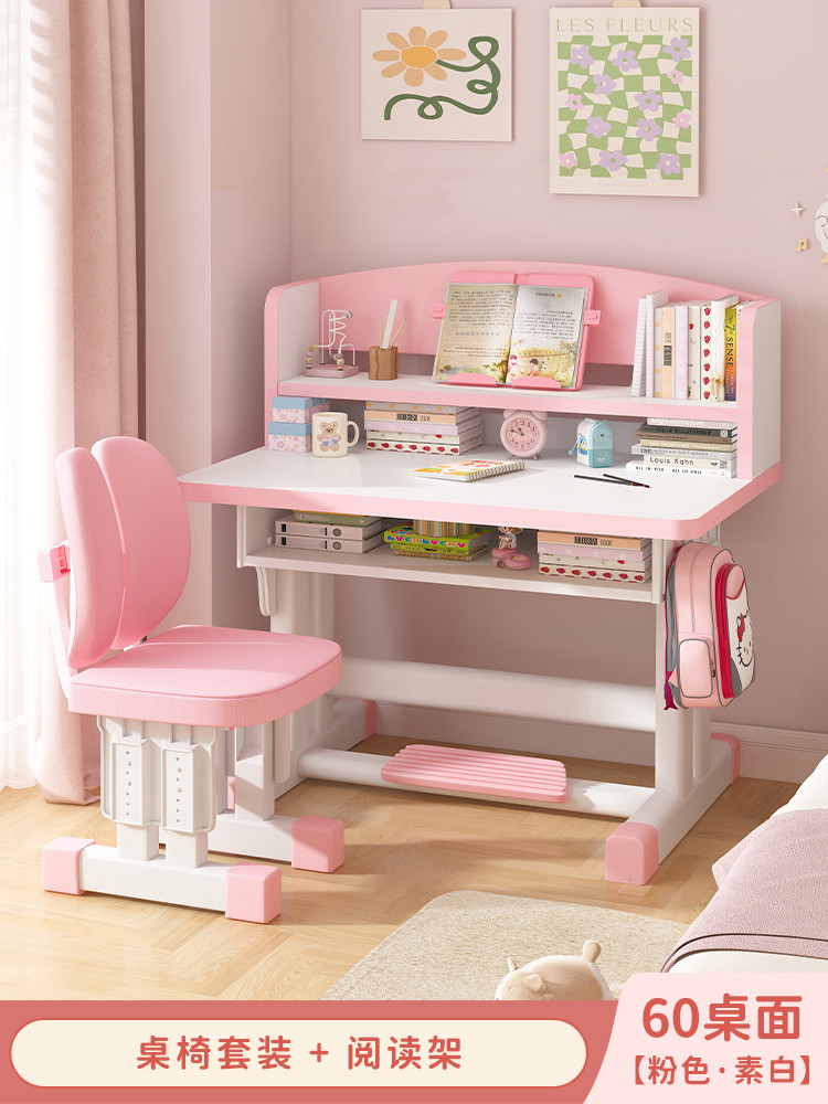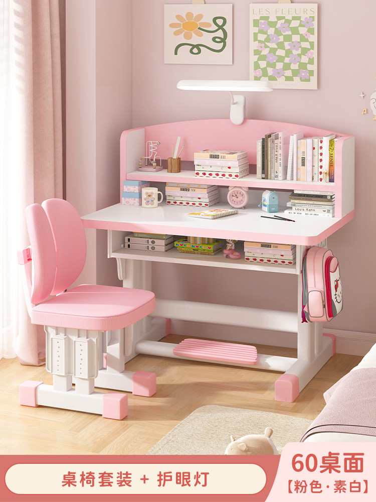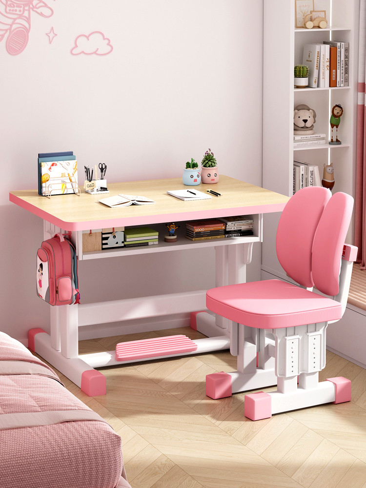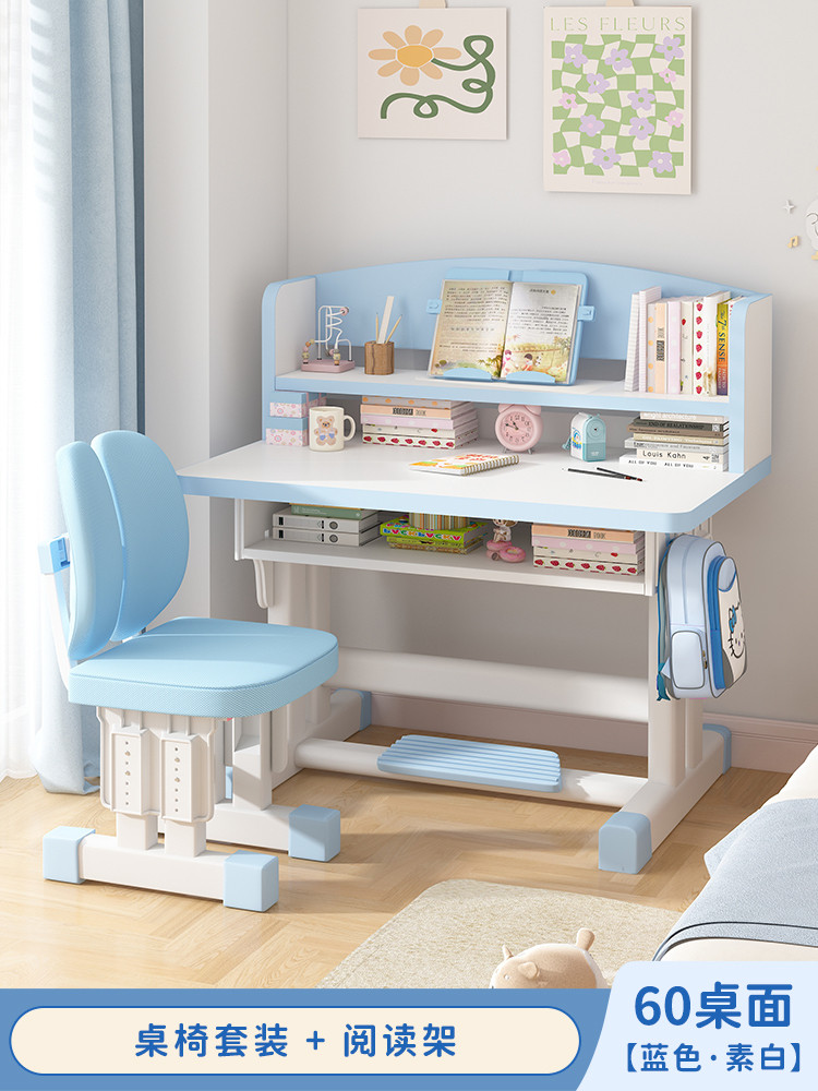 Study Table Ergonomic Height Adjustable Student Study Desk Kids Table And Chair Set With Book Shelf