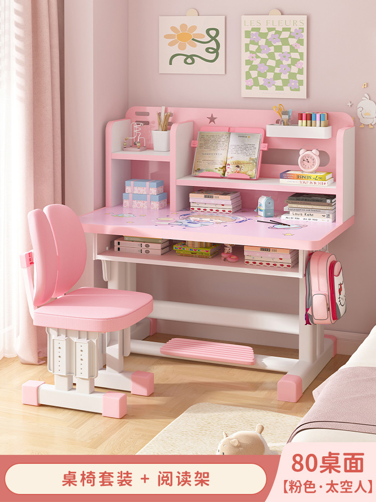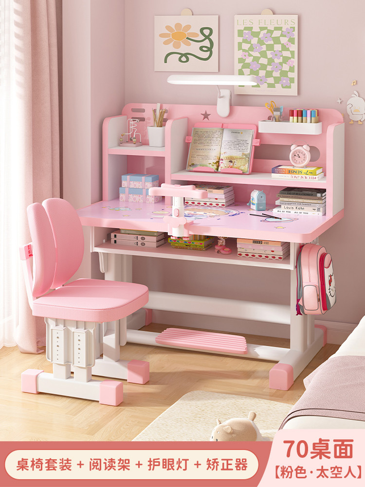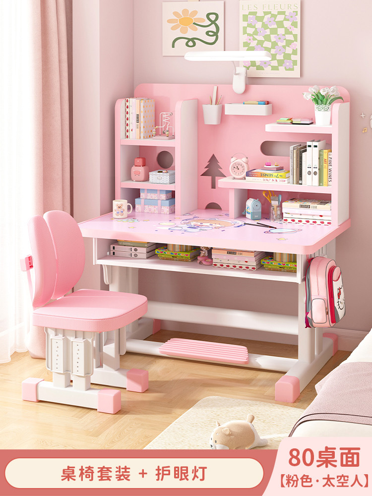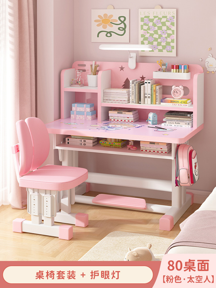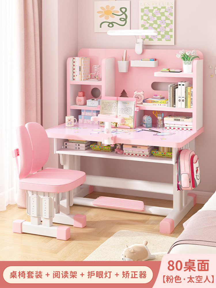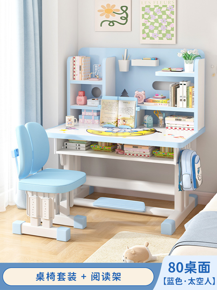 Study Table Ergonomic Height Adjustable Student Study Desk Kids Table And Chair Set With Book Shelf